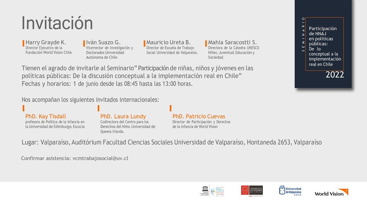 Expertos chilenos y extranjeros en niñez y políticas públicas se darán cita en la UV