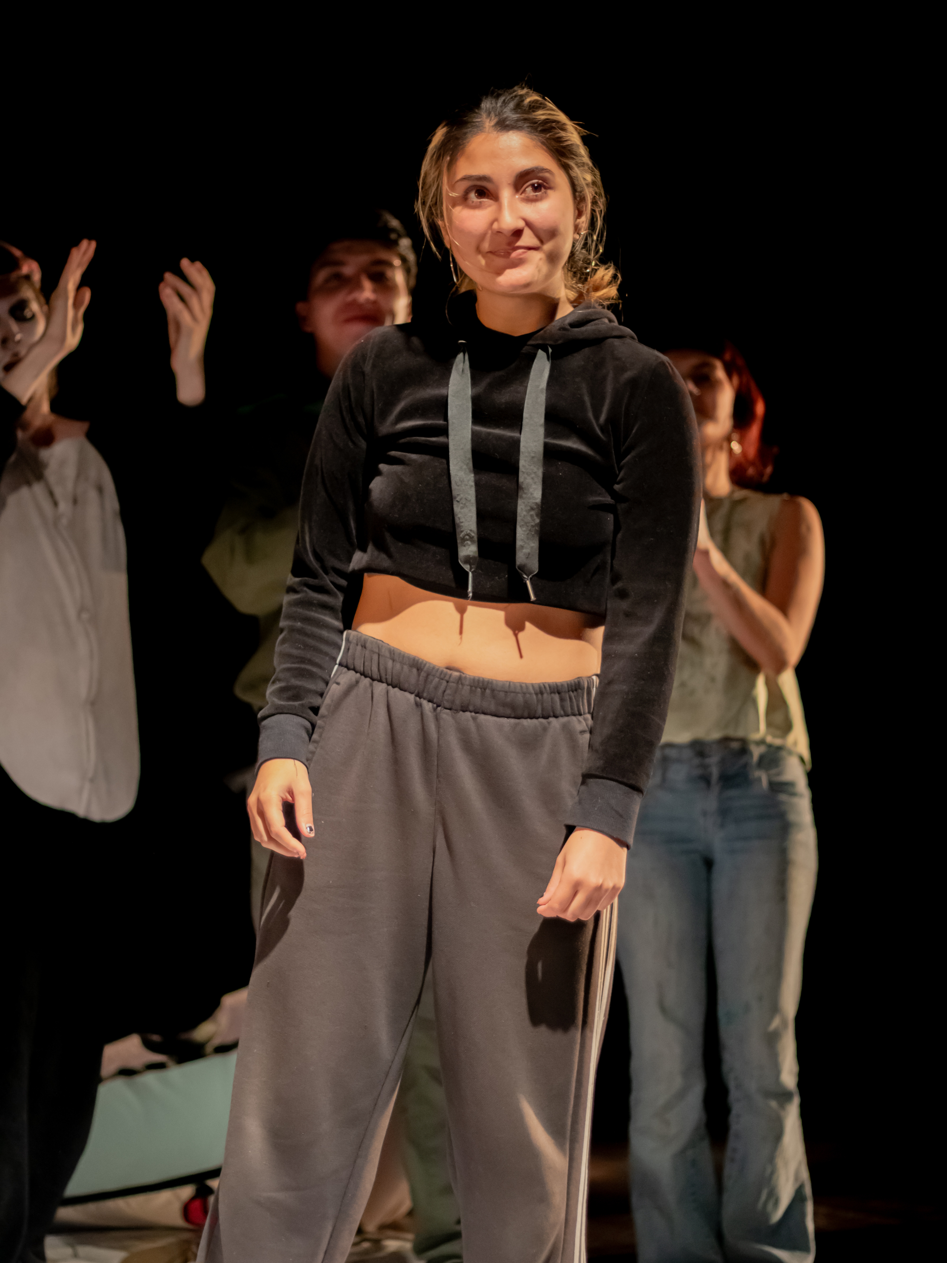 Egresada en 2024 y titulada el 2025 con mención en Dirección Escénica, relata que “mi paso por la Universidad tuvo altos y bajos. Creo que la Escuela me enseñó mucho a tener una visión artística. Tiene una parte teórica muy potente y creo que sale gente bien reflexiva de la Escuela, pero siento que tuve altos y bajos porque es una carrera que te exige mucho, mucho tiempo. Mucha disciplina también, siempre debes estar de alguna forma convencido de la decisión que estás tomando. En el fondo es un esfuerzo mental y físico, porque si bien están los horarios de clases, también están los ensayos, que requieren que tú tengas capacidad para organizarte con otras personas y eso también es bien desgastante, porque generalmente el teatro es muy colectivo. Entonces uno tiene que acostumbrarse también a los ritmos de las otras personas”.