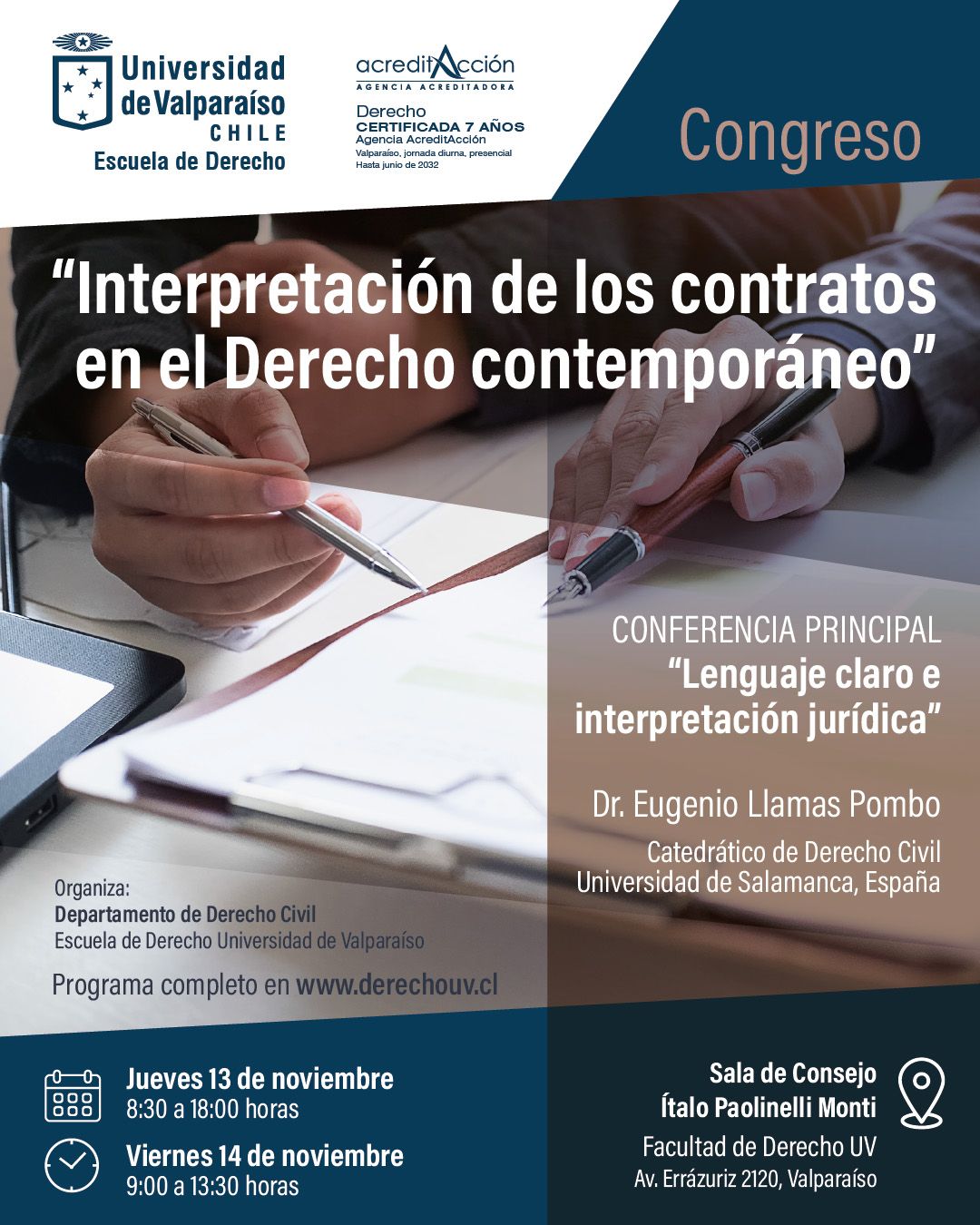 El Congreso reunirá a los más prestigiosos académicos nacionales, además de un invitado internacional, de enorme reconocimiento en el derecho europeo, todos especialistas en derecho de la contratación, quienes expondrán acerca de una temática relevante y en constante evolución, como es la interpretación del contrato desde diversas perspectivas, en el derecho contemporáneo.