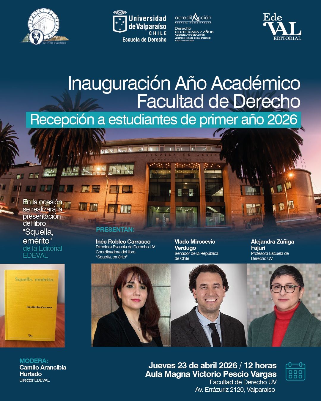 La Facultad de Derecho de la Universidad de Valparaíso invita a participar de la ceremonia de inauguración del año académico 2026, ocasión en que se da la bienvenida a los estudiantes que ingresaron a primer año.