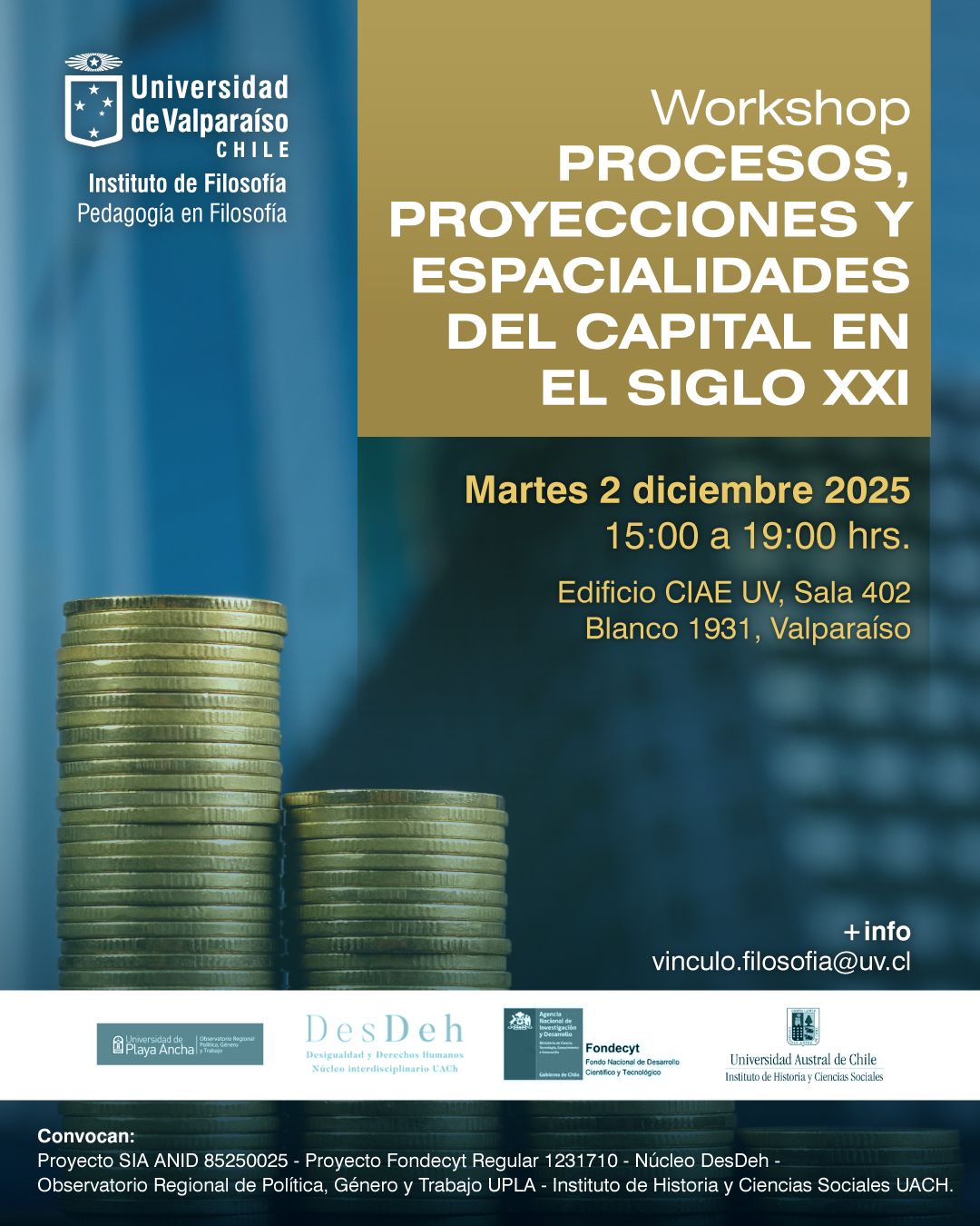 Convoca el Instituto de Filosofía de la Facultad de Humanidades y Educación de la Universidad de Valparaíso, junto a Proyecto SIA ANID 85250025, Proyecto Fondecyt Regular 1231710, Observatorio Regional de Política, Género y Trabajo UPLA, Núcleo DesDeh e Instituto de Historia y Ciencias Sociales UACH.