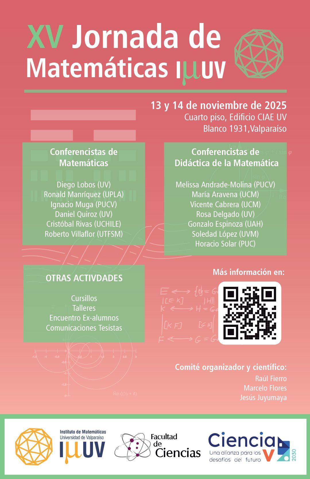 La Jornada de Matemáticas IMUV es una iniciativa del Instituto de Matemáticas de la Universidad de Valparaíso orientada a la divulgación de esta disciplina. Desde su primera versión en 2007, y de forma ininterrumpida desde 2011, ha reunido a estudiantes de pre y posgrado, docentes y egresados en torno a actividades dedicadas tanto a las matemáticas puras como a su enseñanza y didáctica, consolidándose como un espacio de encuentro y vinculación académica.