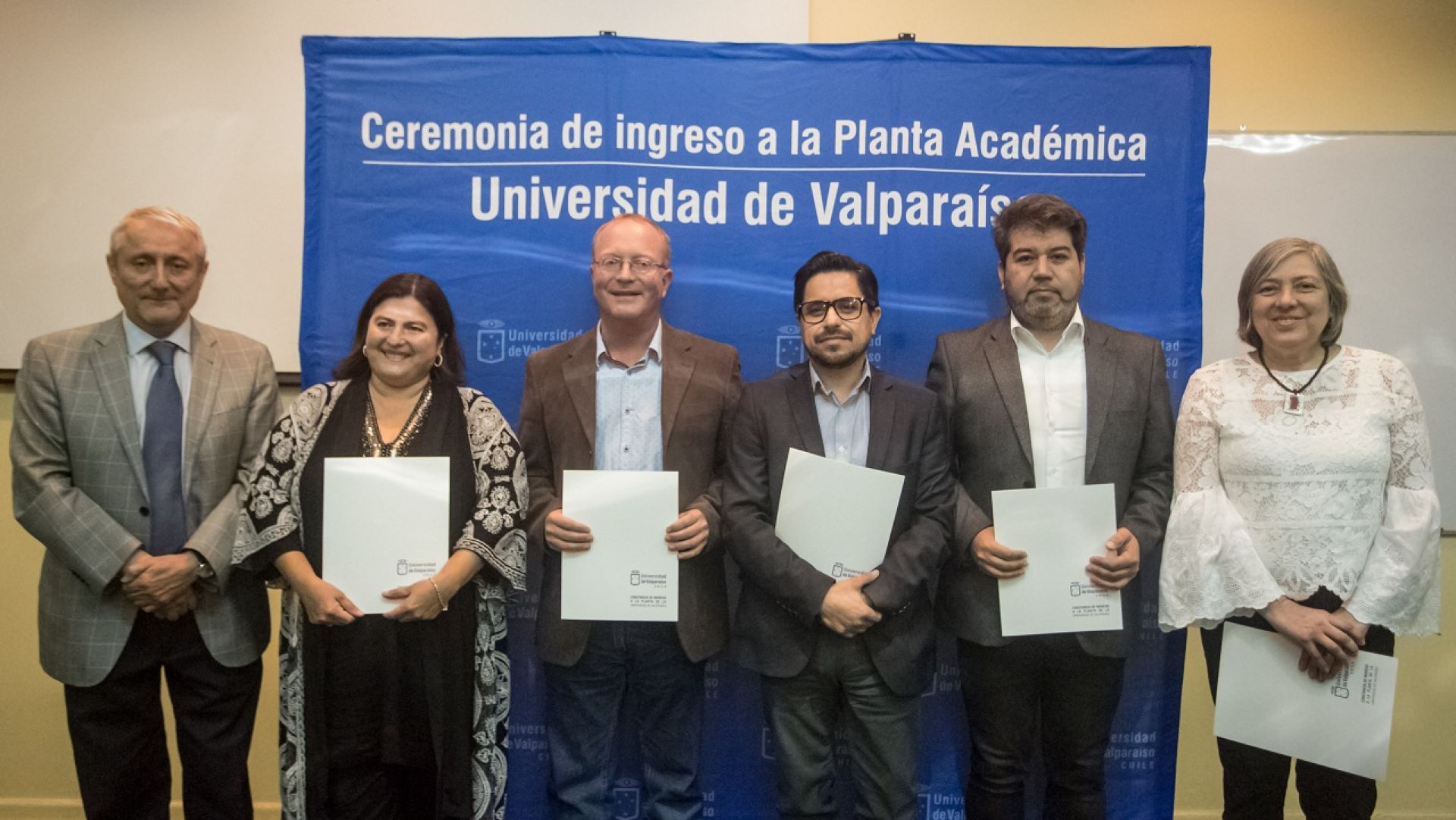 En una solemne ceremonia, diecisiete académicos y académicas de las facultades de Ciencias, Farmacia y Humanidades y Educación recibieron de manos del rector Aldo Valle la constancia que los reconoce como nuevos miembros de la planta académica de la Universidad de Valparaíso.