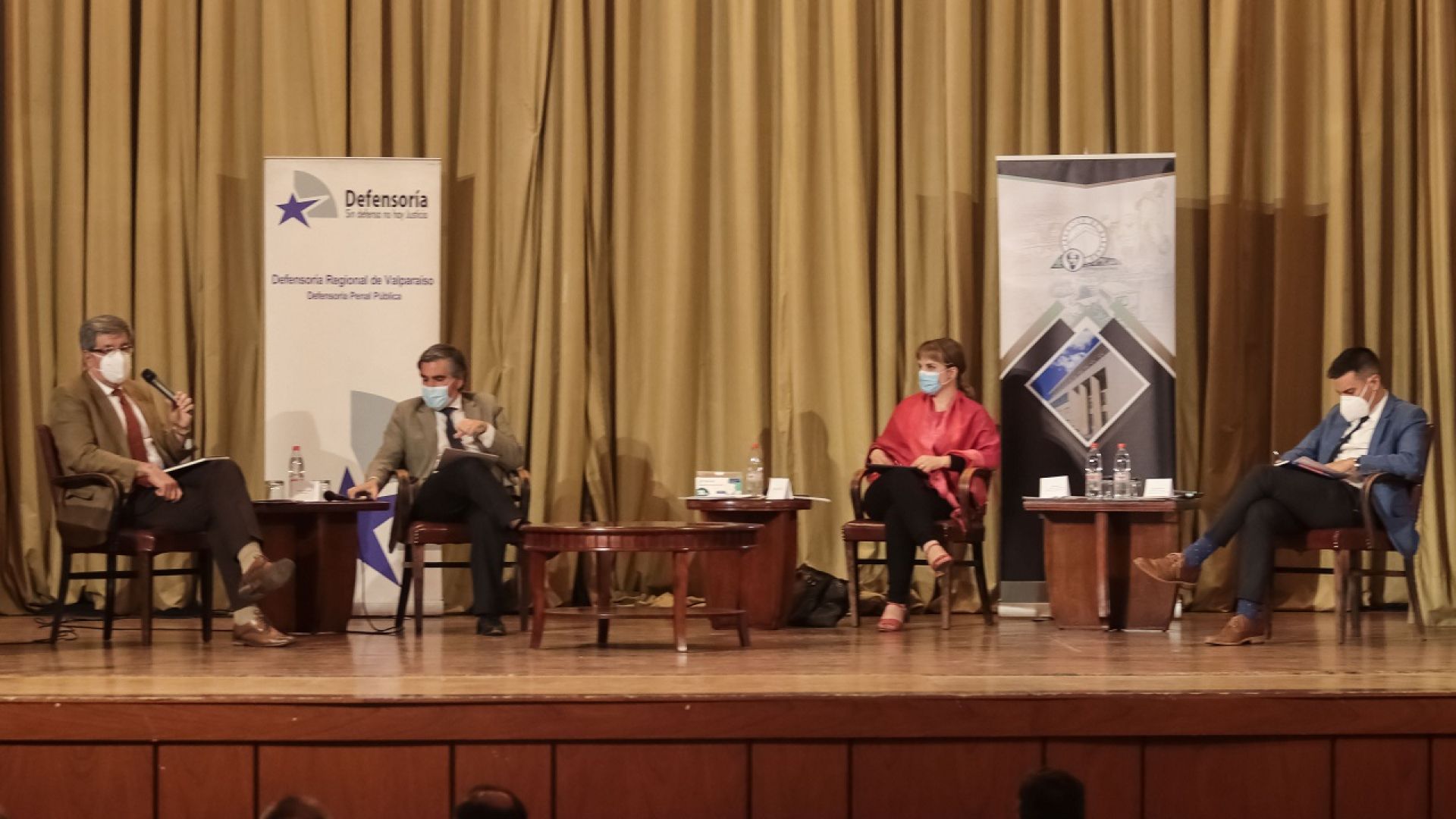 Participaron del diálogo José Luis Guzmán, profesor de la Universidad de Valparaíso; Laura Mayer, académica de la PUCV; y Juan Pablo Mañalich, docente de la Universidad de Chile. Moderó Fernando Alliende, jefe de estudios de la Defensoría Regional.