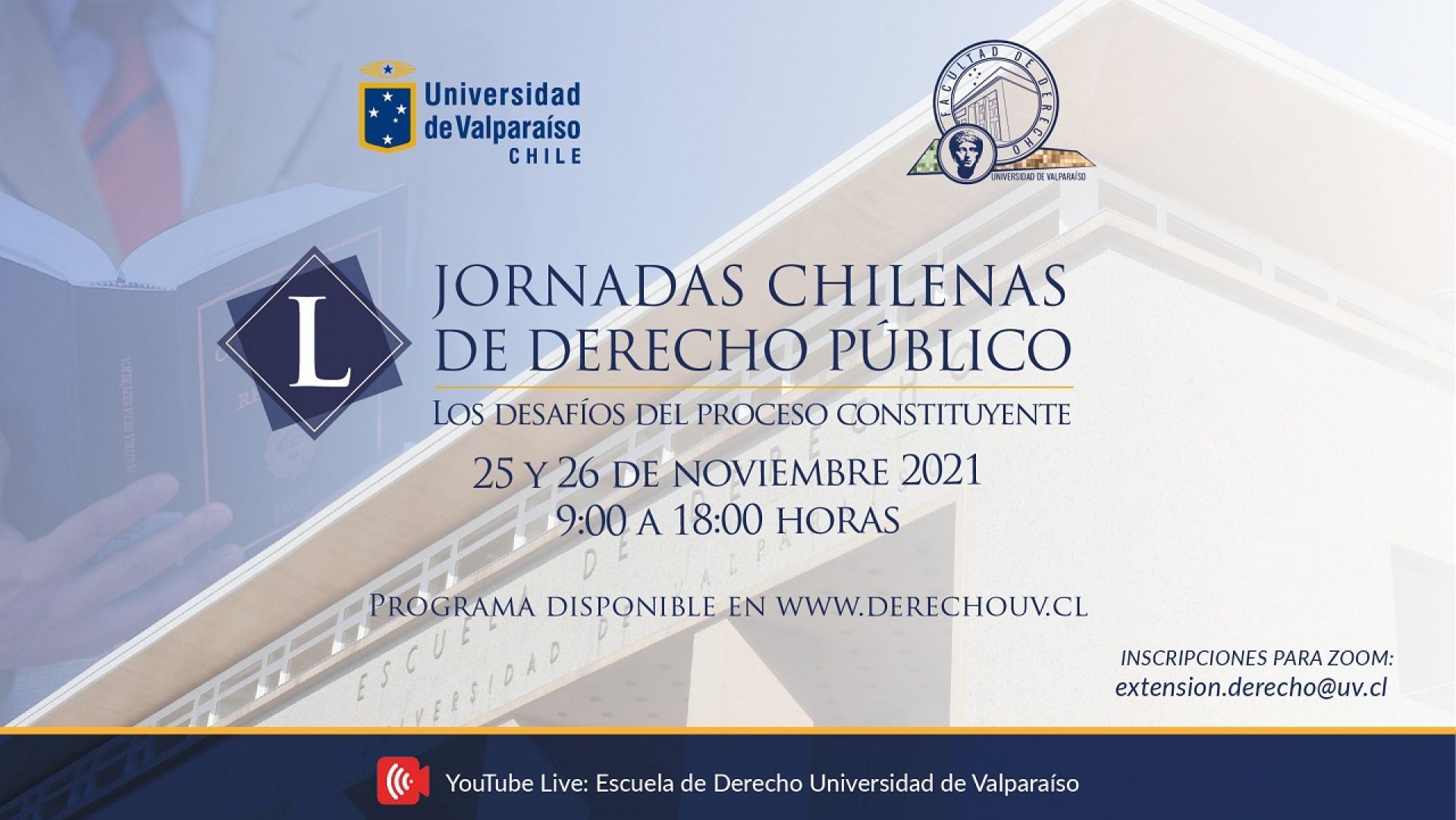 Las L Jornadas Chilenas de Derecho Público serán inauguradas por el decano de la Facultad de Derecho de la UV, Alberto Balbontín, y contará con las palabras iniciales del presidente del departamento de Derecho Público, Carlos Dorn, y la charla del vicepresidente de la Convención Constitucional y académico de la Escuela de Derecho UV, Jaime Bassa.