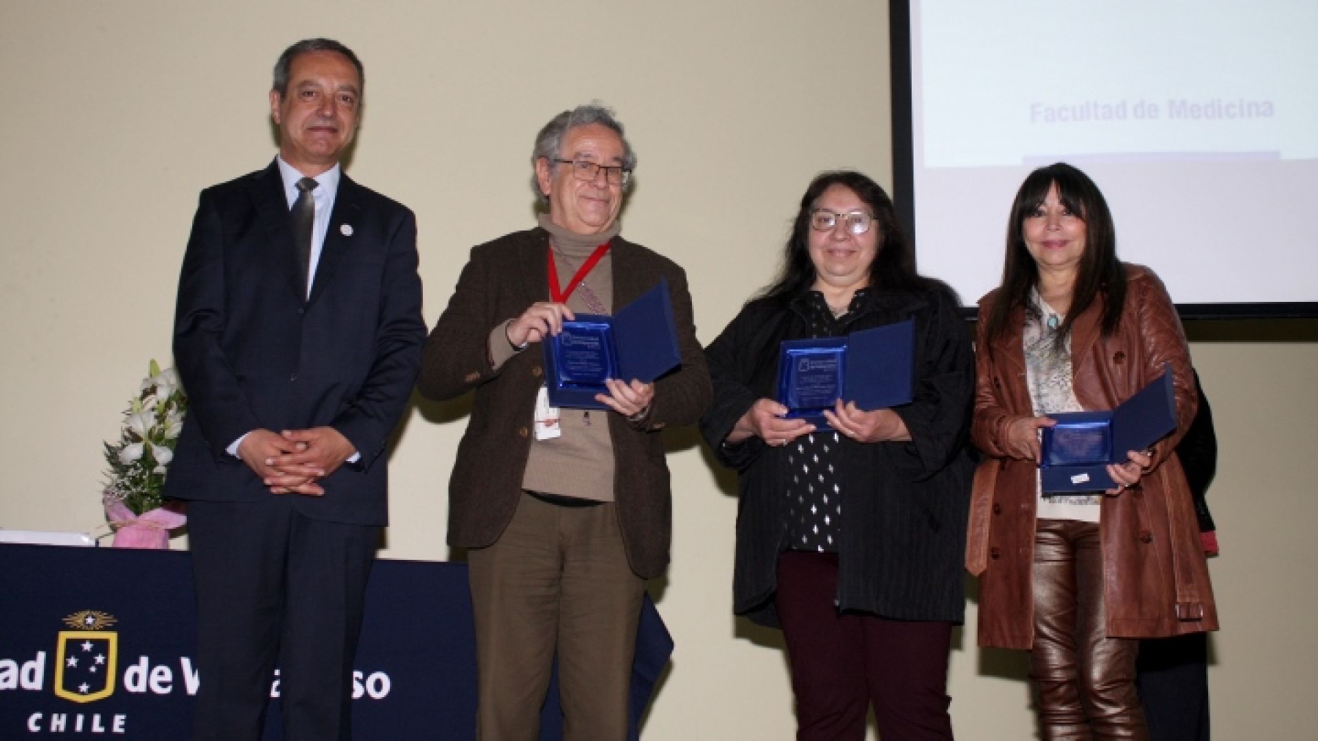 Acto seguido fueron distinguidos a aquellos académicos y académicas que han destacado en sus ámbitos de especialización y han mostrado un gran espíritu docente y calidad humana. Ellos fueron Miriam Pastén, docente de Ecotomografía; María Elena Morales, docente de Oftalmología, y Raúl González, docente de Anatomía Patológica.