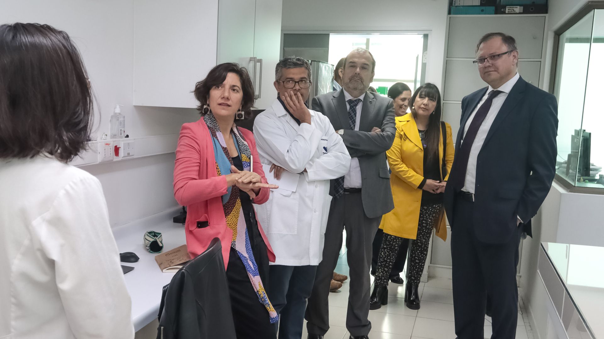 La jefa de la cartera de Ciencia fue recibida por el rector de la Universidad de Valparaíso, Osvaldo Corrales, quien estuvo acompañado por el prorrector, Christian Corvalán; la vicerrectora de Investigación, Soledad Torres; el director Investigación, Oliver Schmachtenberg; el director de Innovación y Transferencia Tecnológica, Alejandro Dinamarca; el doctor Sebastián San Martín, director del programa de doctorado en Ciencias e Ingeniería para la Salud y académico de la Escuela de Medicina; la doctora Ximena Collao, directora del Departamento de Preclínicas y académica de la Escuela de Medicina; académicos, investigadores, profesionales, técnicos y funcionarios.