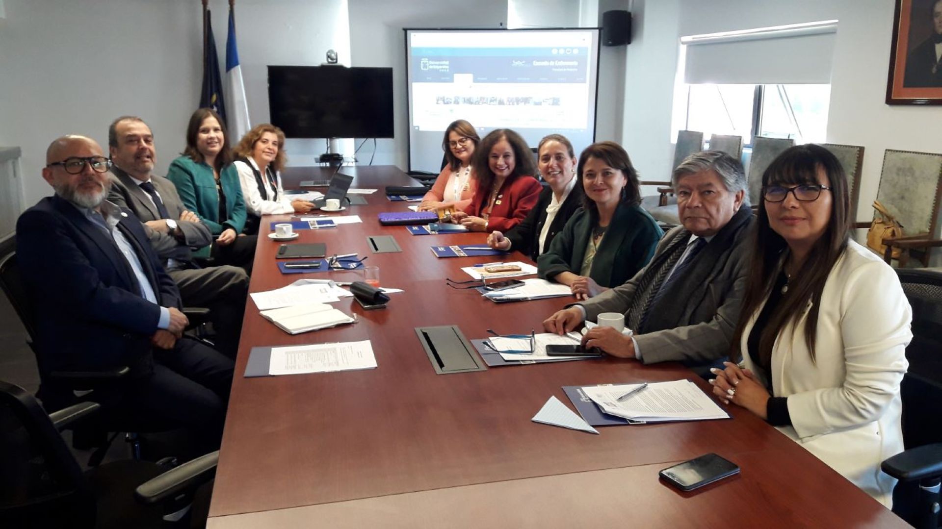 En ella participaron el prorrector Christian Corvalán; el vicerrector de Vinculación con el Medio, Carlos Lara; el decano y la vicedecana de la Facultad de Medicina, Antonio Orellana y Susana Cáceres, respectivamente; la directora de la Escuela de Enfermería, Paulina Gundelach; la jefa de carrera de Enfermería Casa Central, Carolina Ruiz-Tagle; la jefa de carrera de Enfermería sede San Felipe, Ivonne Jaime; y la coordinadora del equipo académico RNAO-UV, Pamela Lobos.