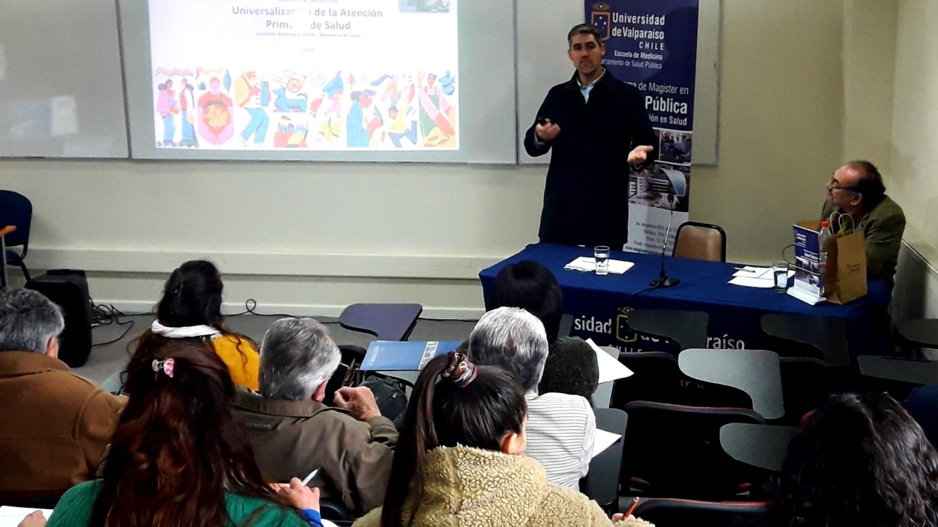 El representante ministerial se refirió al tema en un encuentro que tuvo lugar en el Campus de la Salud de la Universidad de Valparaíso, en el que también participó e intervino el profesor del Magíster en Salud Pública que imparte la Escuela de Medicina de la UV Mario Parada y al que asistieron autoridades universitarias, profesionales, docentes y estudiantes de ese programa de postgrado.