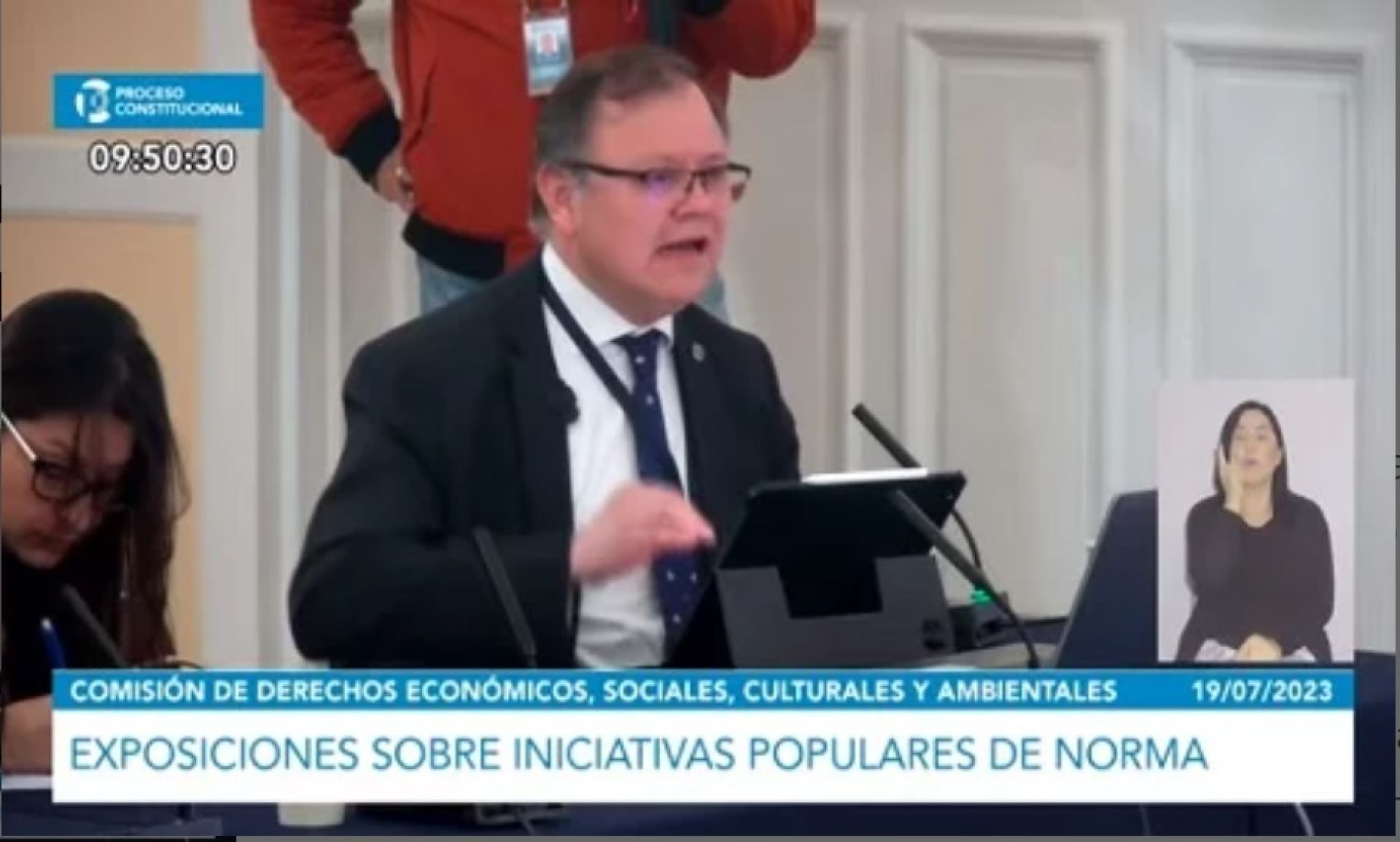 El presidente del Consorcio de Universidades del Estado de Chile y rector de la Universidad de Valparaíso, Osvaldo Corrales, realizó una exposición en la comisión de Derechos Económicos, Sociales y Culturales del Consejo Constitucional.