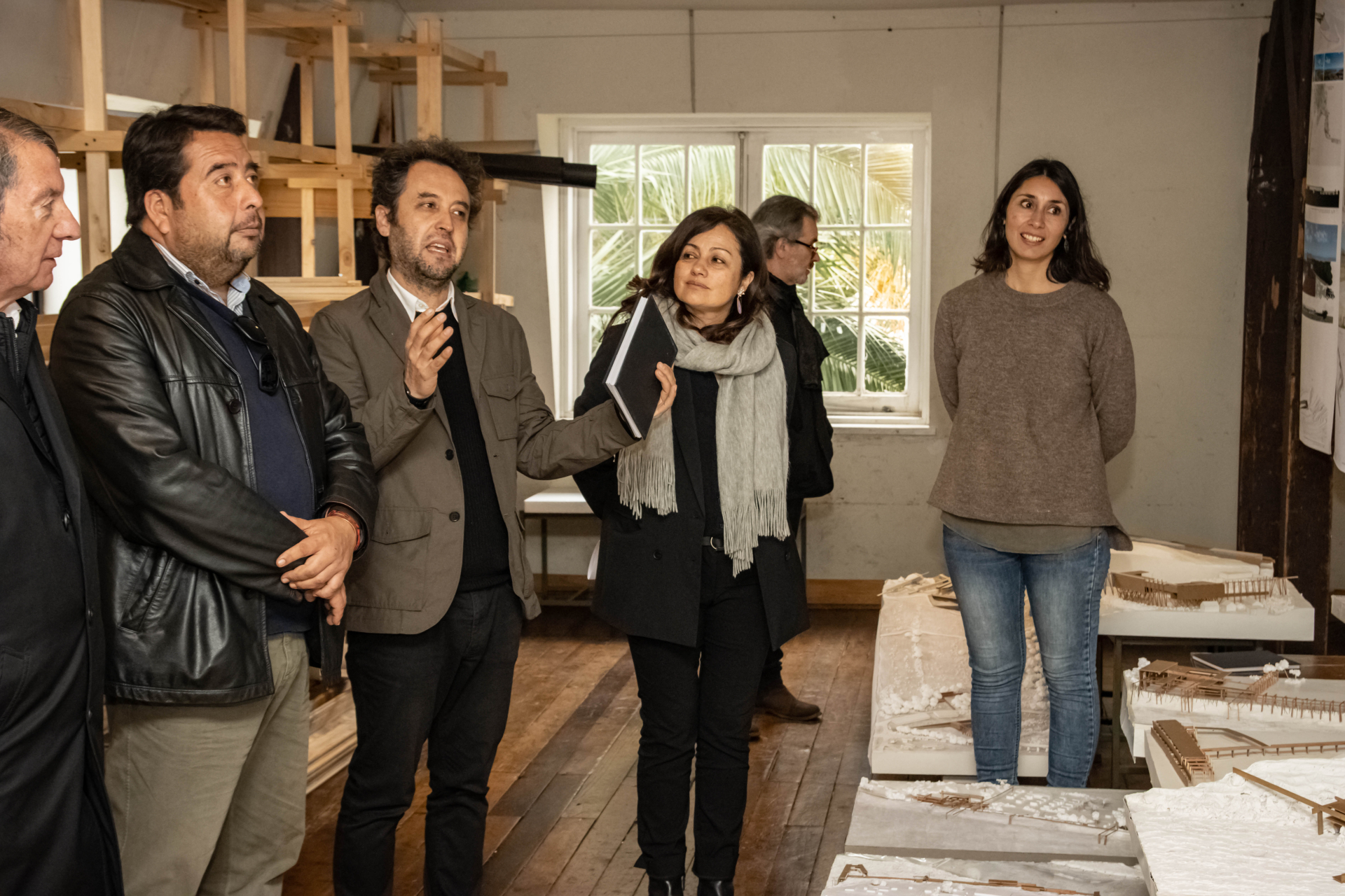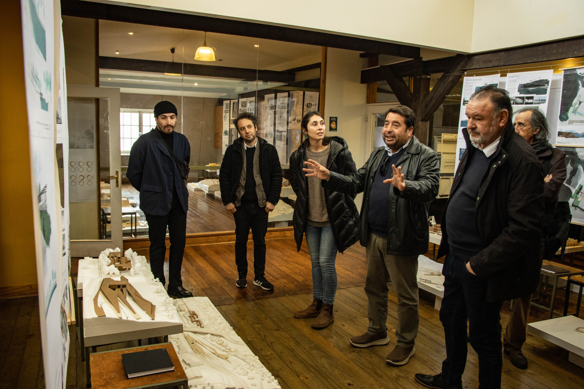 Una delegación de la Empresa Portuaria San Antonio (EPSA). integrada por Renato Silva, vicepresidente; Héctor Marchant, jefe de Sustentabilidad, y Óscar Vásquez, ejecutivo de la Gerencia Puerto Exterior, visitaron la Escuela de Arquitectura para conocer el trabajo de los estudiantes de los talleres de Finalización del Ciclo Formativo y de Arquitecturas de Ciudad del Ciclo Profesional.
