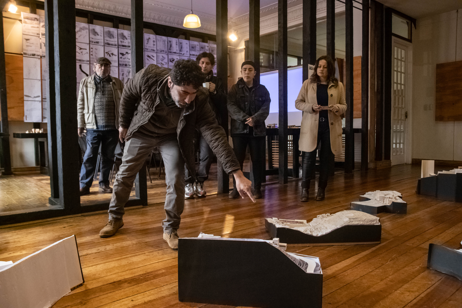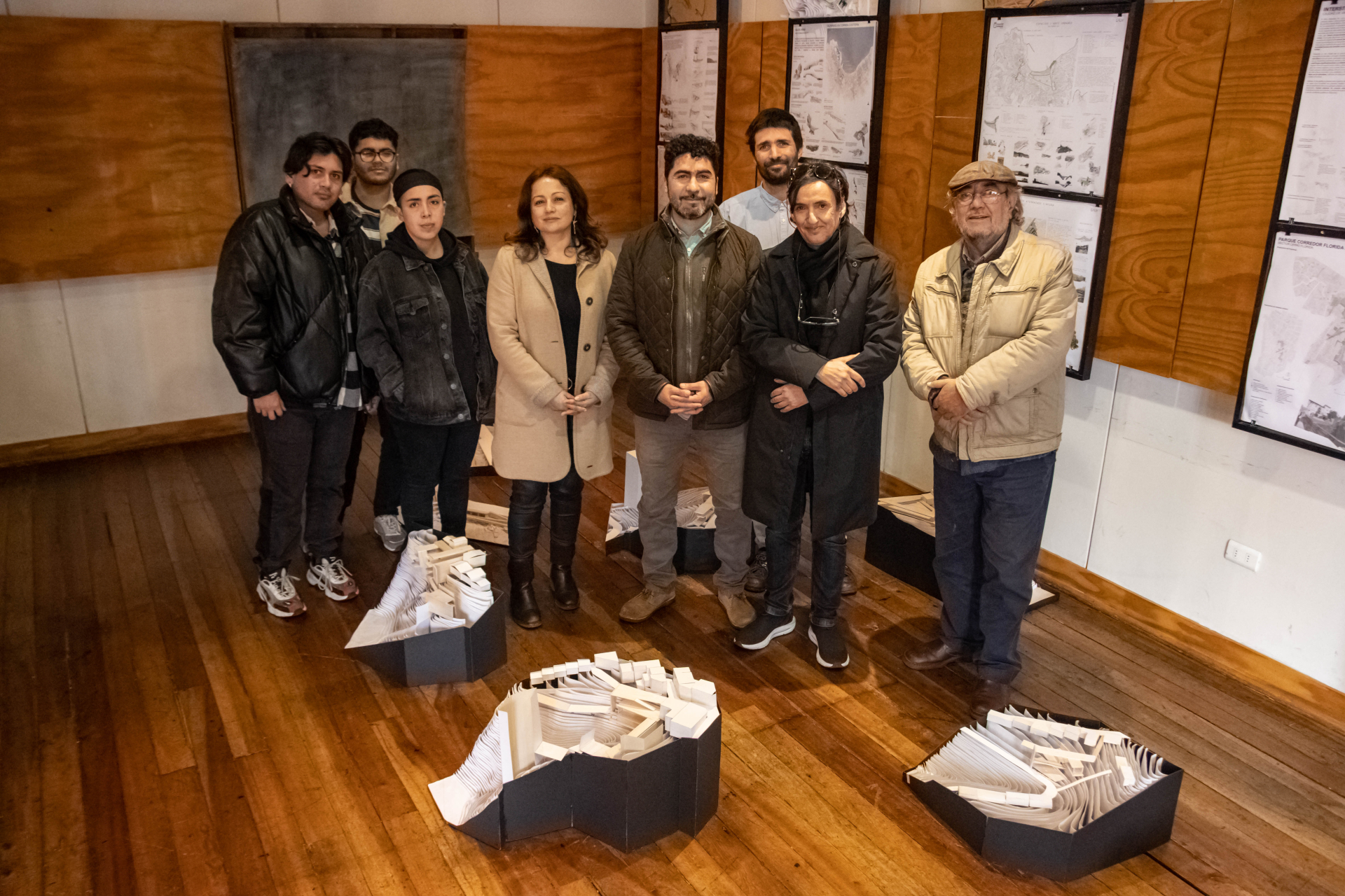 La muestra contó con la presencia de Jaime Pedreros, arquitecto y analista de Planes y Programas de la Seremi de Vivienda y Urbanismo; Mabel Santibáñez, directora de la Escuela de Arquitectura, y los académicos Gonzalo Fernández, Fidel Olfos y Andrés Oyarzún, junto a un grupo de estudiantes.