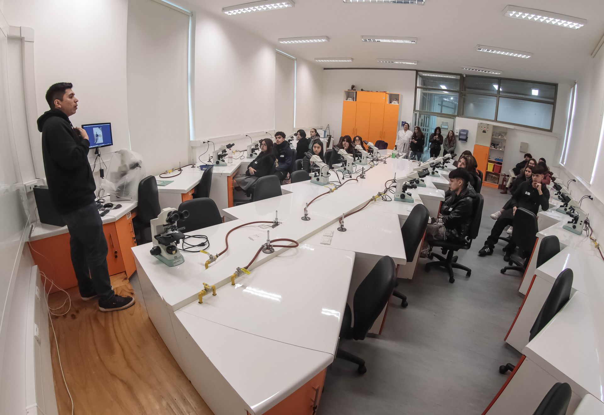 La actividad, que convocó a jóvenes de 16 establecimientos educacionales públicos, puso énfasis en la experiencia práctica y en la entrega de información, que contempló la visita a los centros de Micro Bioinnovación (CMBi) y de Análisis Nutricional (CAN), como también a los laboratorios de Microbiología, Microscopia, del Estado Nutricional (LABEEN) y de Ciencias de los Alimentos, donde realizaron un taller de preparación de alimentos saludables.