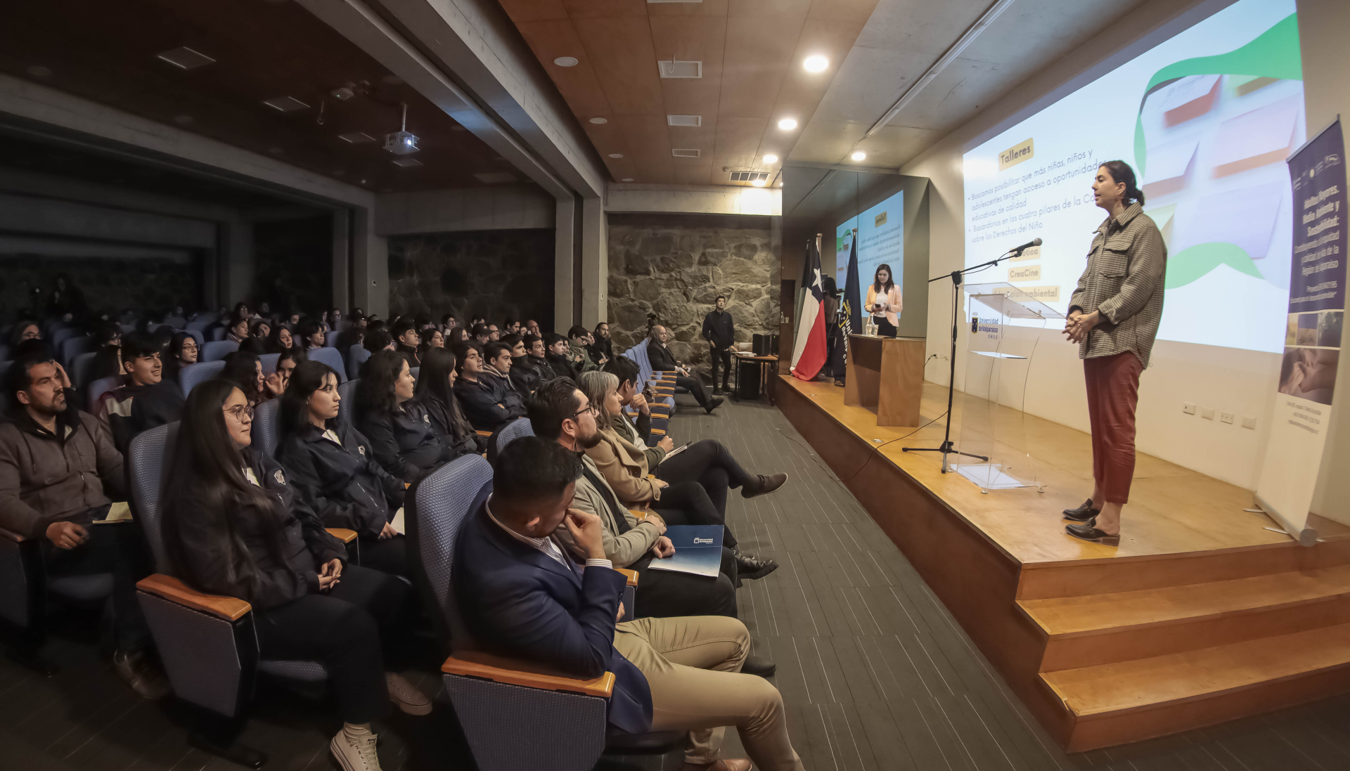 La actividad se realizó en el auditorio de la sede Las Heras de la Facultad de Ciencias Económicas y Administrativas, y reunió a más de un centenar de autoridades, académicos, profesionales de diferentes disciplinas, profesores de enseñanza media y escolares.