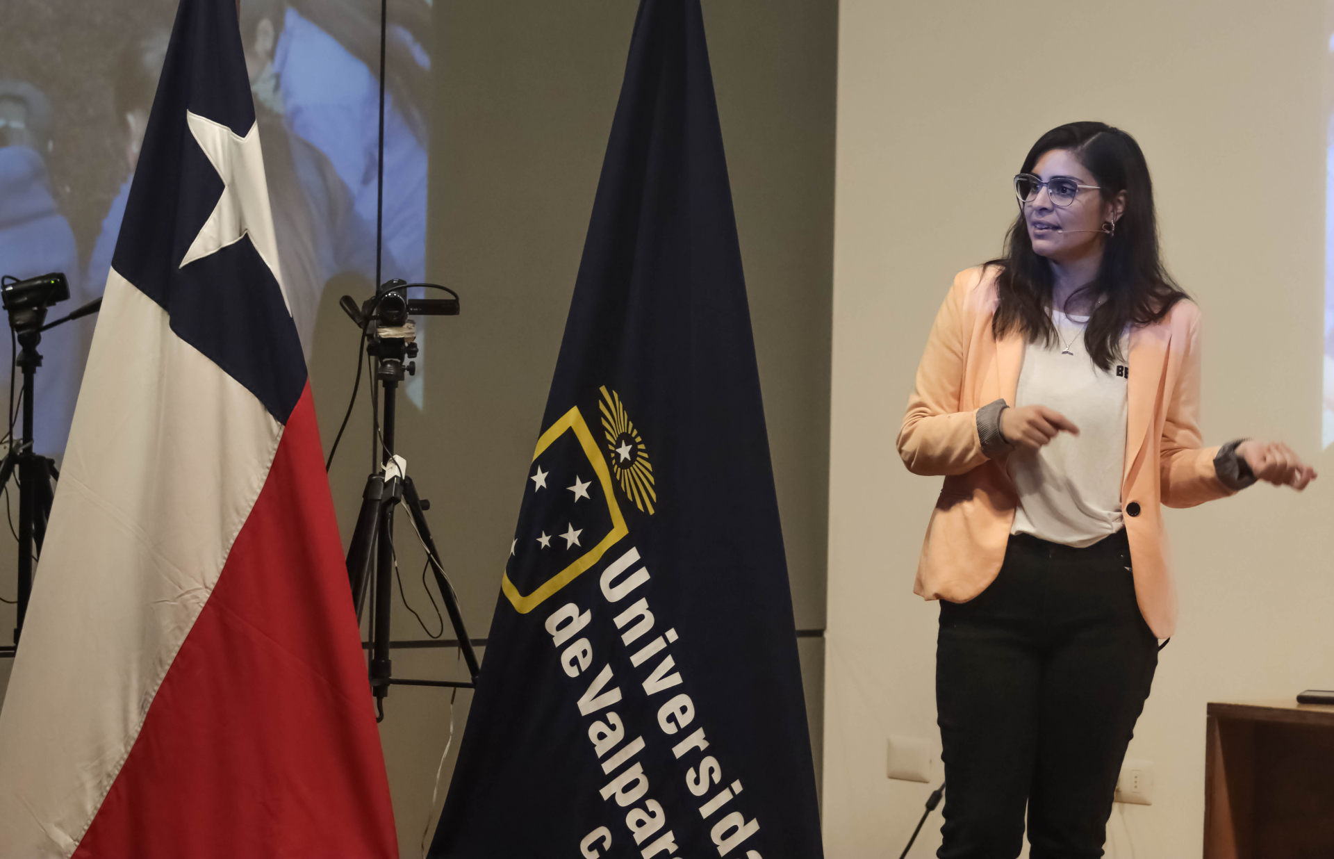Posteriormente hizo uso de la palabra Fabianna Otárola, académica de la Universidad de Playa Ancha, quien se refirió al trabajo colaborativo que desembocó en la edición del libro “Las ciencias son también femeninas”, texto que recoge trece biografías de científicas que se desempeñan en universidades tradicionales de la región.