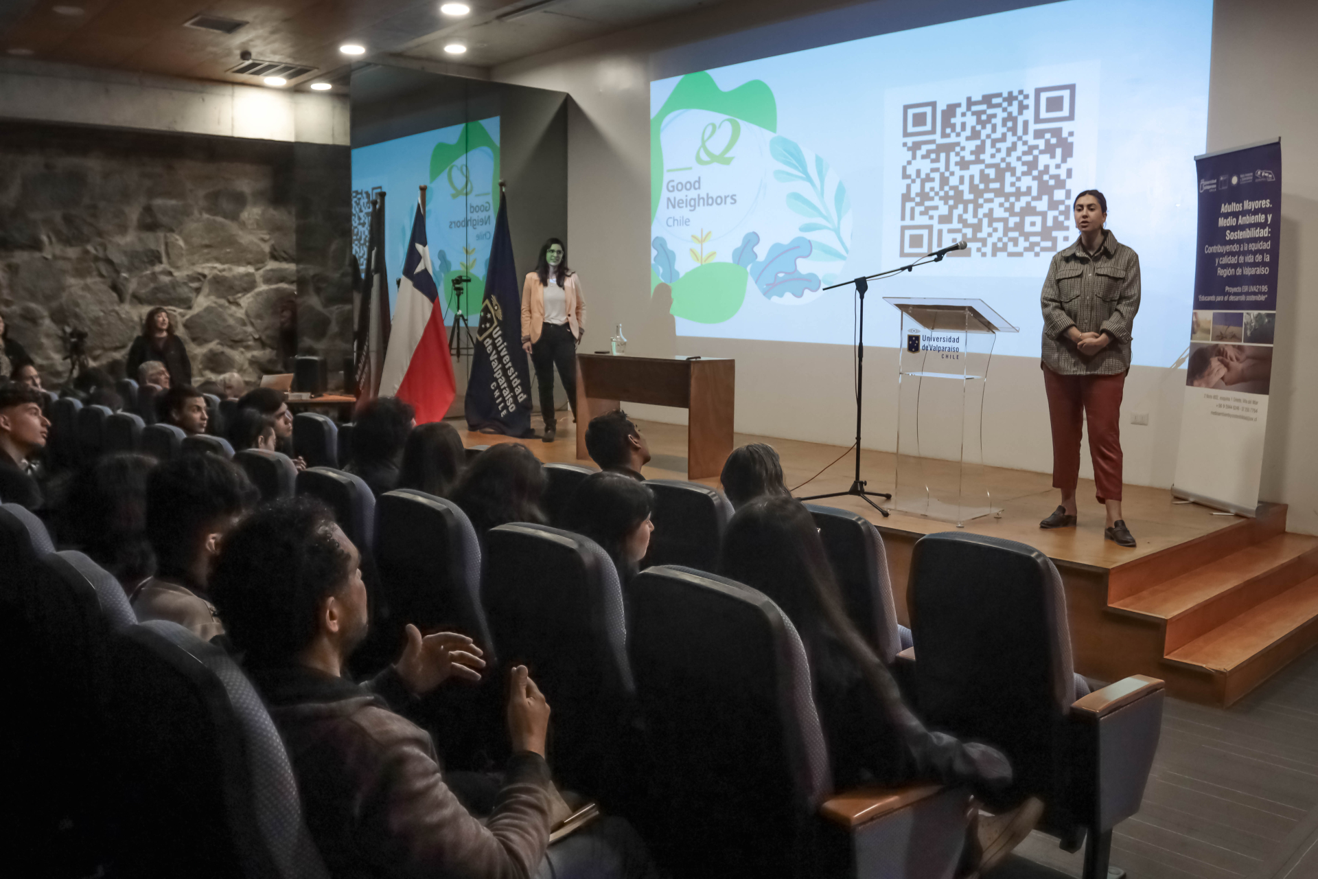 Luego fue el turno de Camila Ibarra y Camila Figueroa, representantes de la ONG Good Neighbors, quienes dieron cuenta de los avances y desafíos de las mujeres en las ciencias y de algunas de las iniciativas que con ese fin realiza dicha entidad.