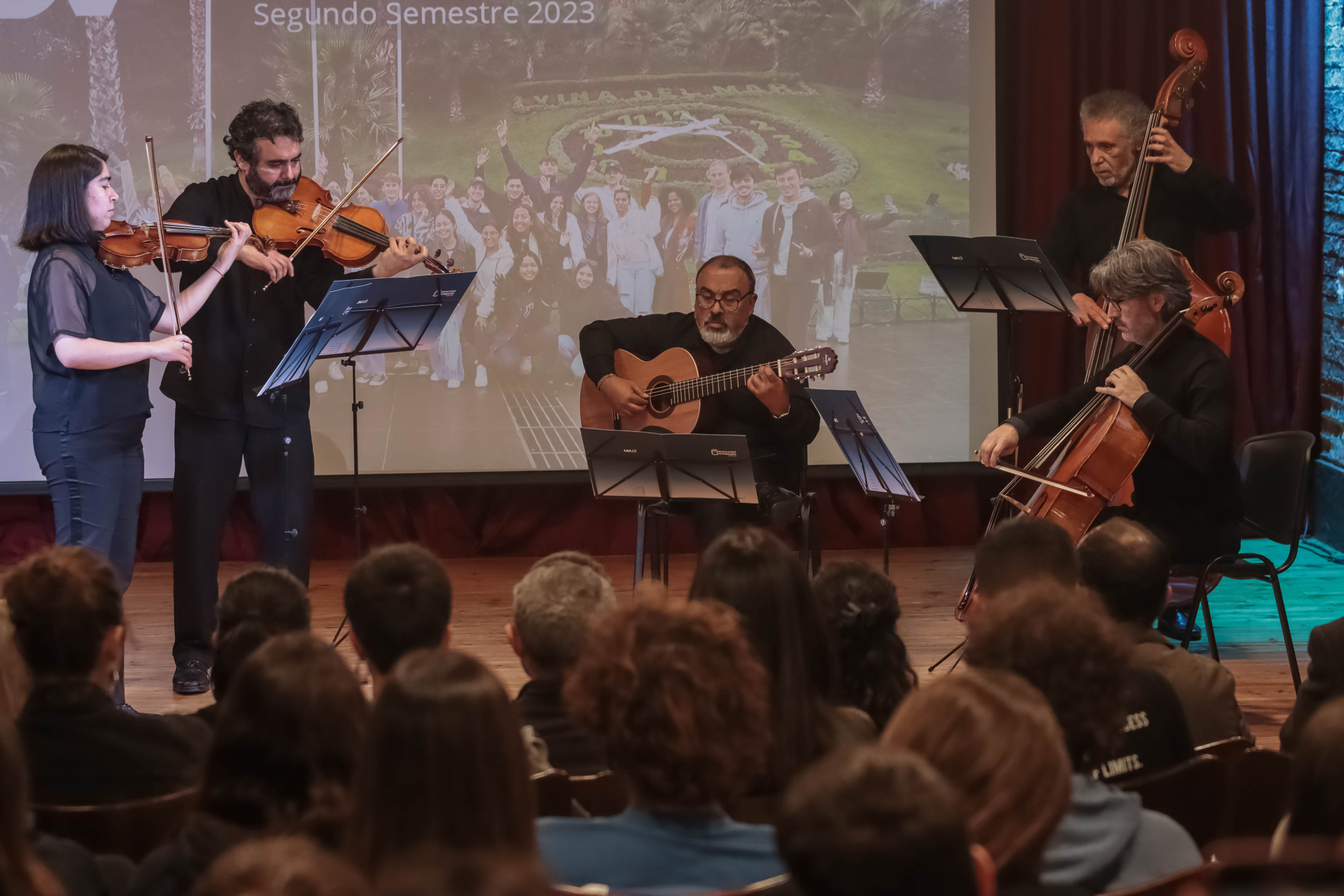 La ceremonia contó con la intervención de la Agrupación Musical de Cámara de la UV, que interpretó versiones instrumentales de las canciones "Luchín", de Víctor Jara, y la cueca tradicional "La rosa con el clavel".