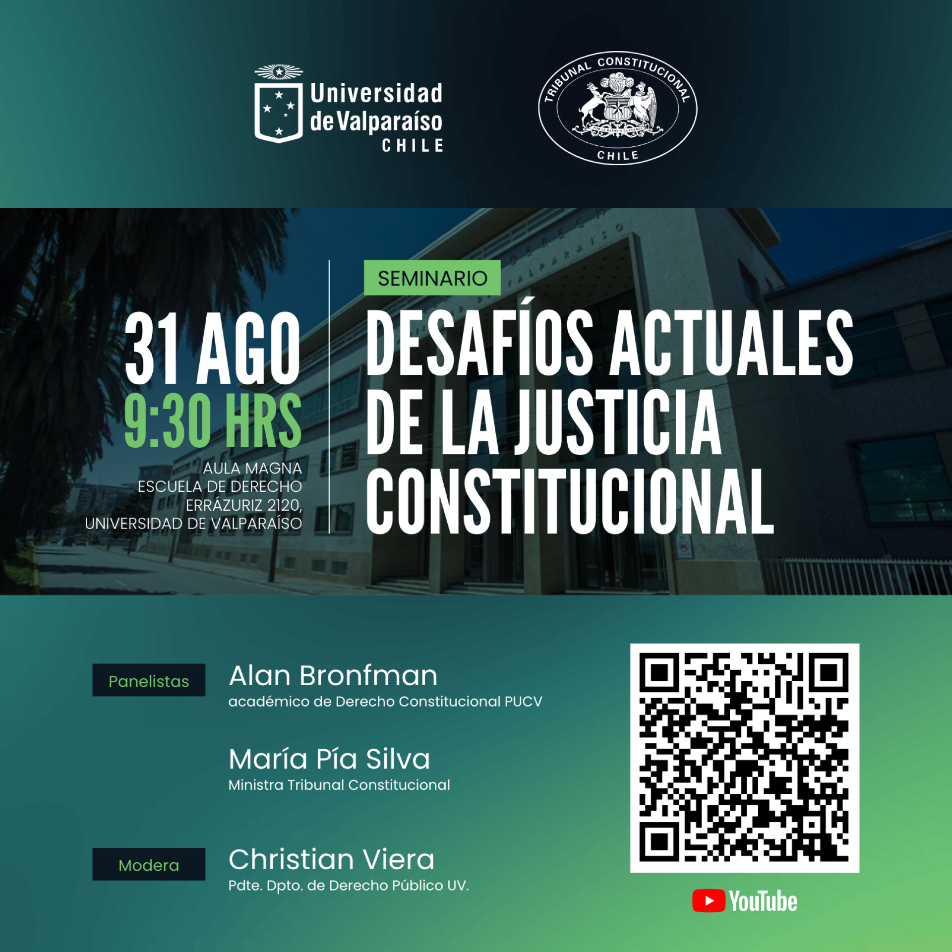 En el seminario expondrán Alan Bronfman, profesor de la Pontificia Universidad Católica de Valparaíso, y María Pía Silva, ministra del Tribunal Constitucional, en un panel que será moderado por Christian Viera, académico y presidente del Departamento de Derecho Público de la Escuela de Derecho de la UV.