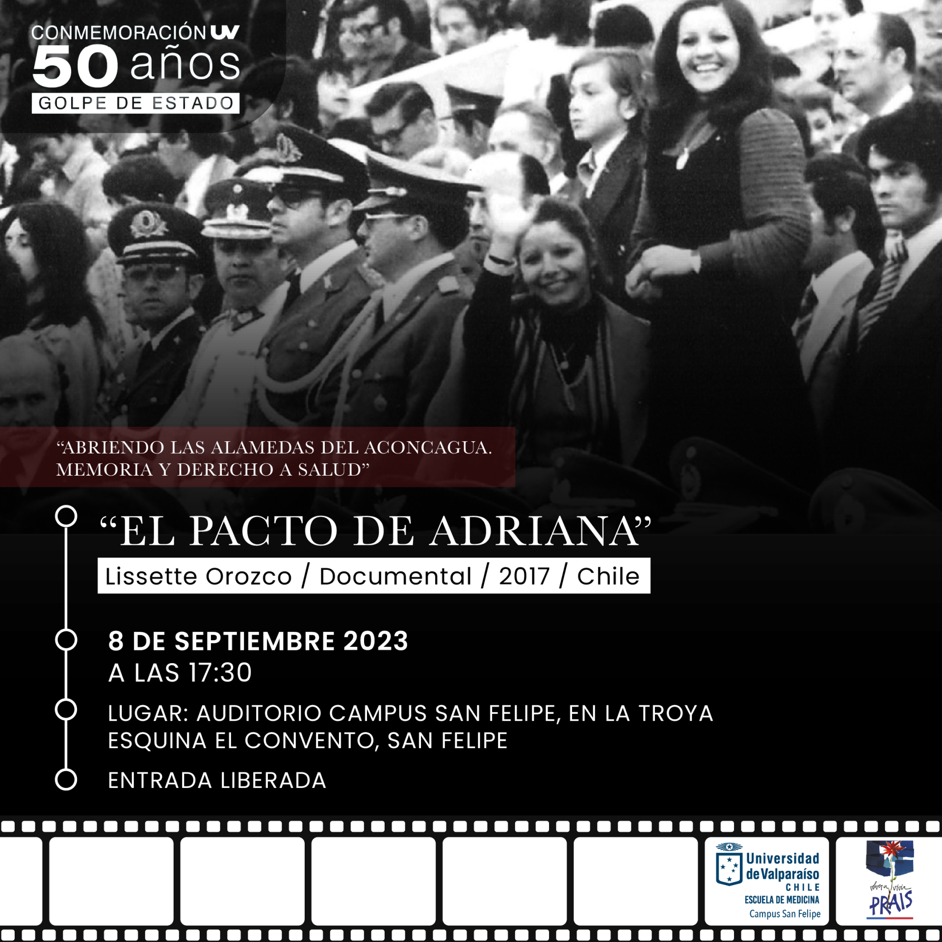 Luego, se exhibirá el documental “El pacto de Adriana” de Lissette Orozco (2017, Chile) para finalizar con un conversatorio.