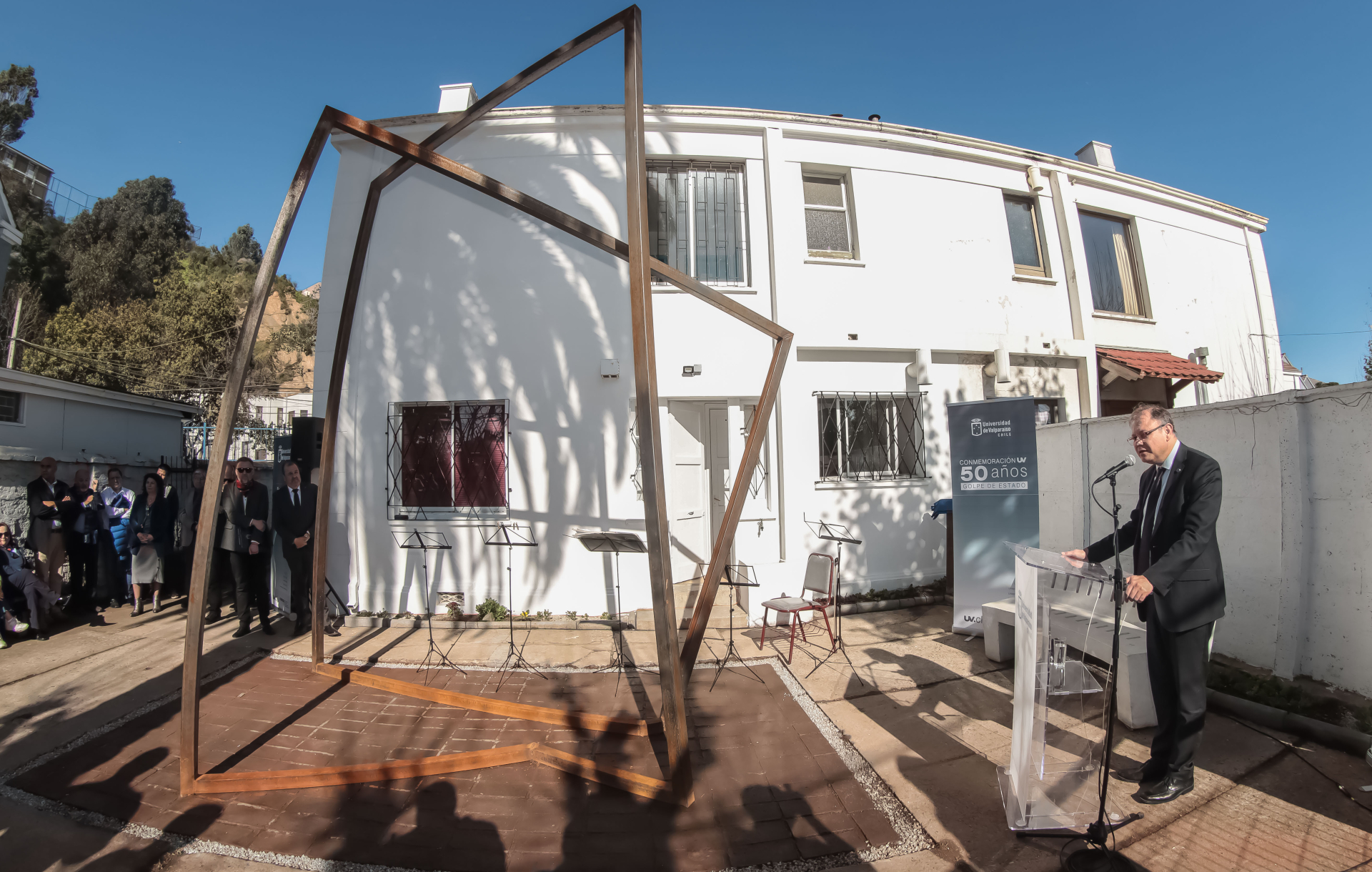 Durante la tarde, la Facultad de Ciencias Económicas y Administrativas de la UV, en Viña del Mar, fue el centro de otra actividad conmemorativa: la inauguración de la obra conmemorativa “La línea”, cuyo autor es el director de Extensión y Comunicaciones de la UV, Osvaldo Bizama.