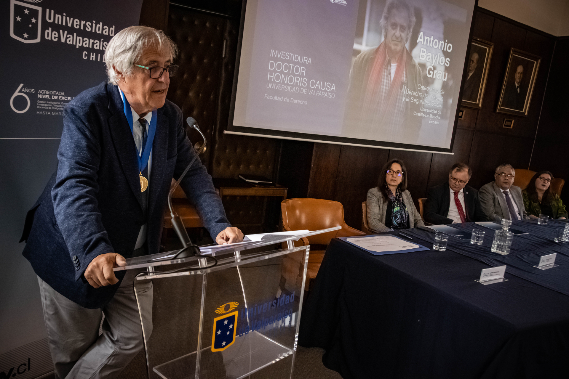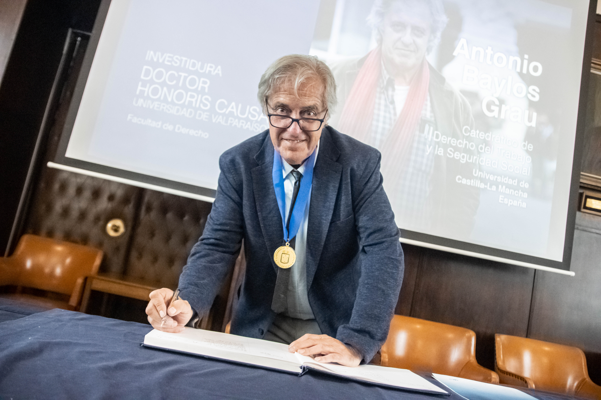 La Universidad de Valparaíso confirió el grado académico de Doctor Honoris Causa al catedrático Antonio Baylos Grau, de la Universidad de Castilla-La Mancha (España), por su dilatada trayectoria académica y su contribución al Derecho del Trabajo y la Seguridad Social en Latinoamérica.
