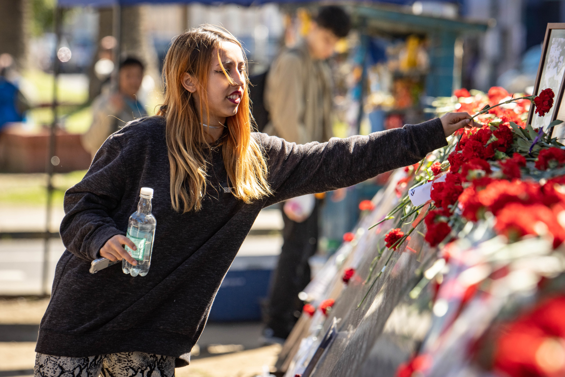 La académica Myriam Espinoza, de la Escuela de Teatro de la Universidad de Valparaíso, lideró una romería hacia el Memorial de Detenidos Desaparecidos de Valparaíso, para realizar un homenaje a la memoria de Luis Tamayo y Nelson Garrido, integrantes del grupo de Teatro La Sebastiana, que funcionó entre 1979 y 1988 en Valparaíso.