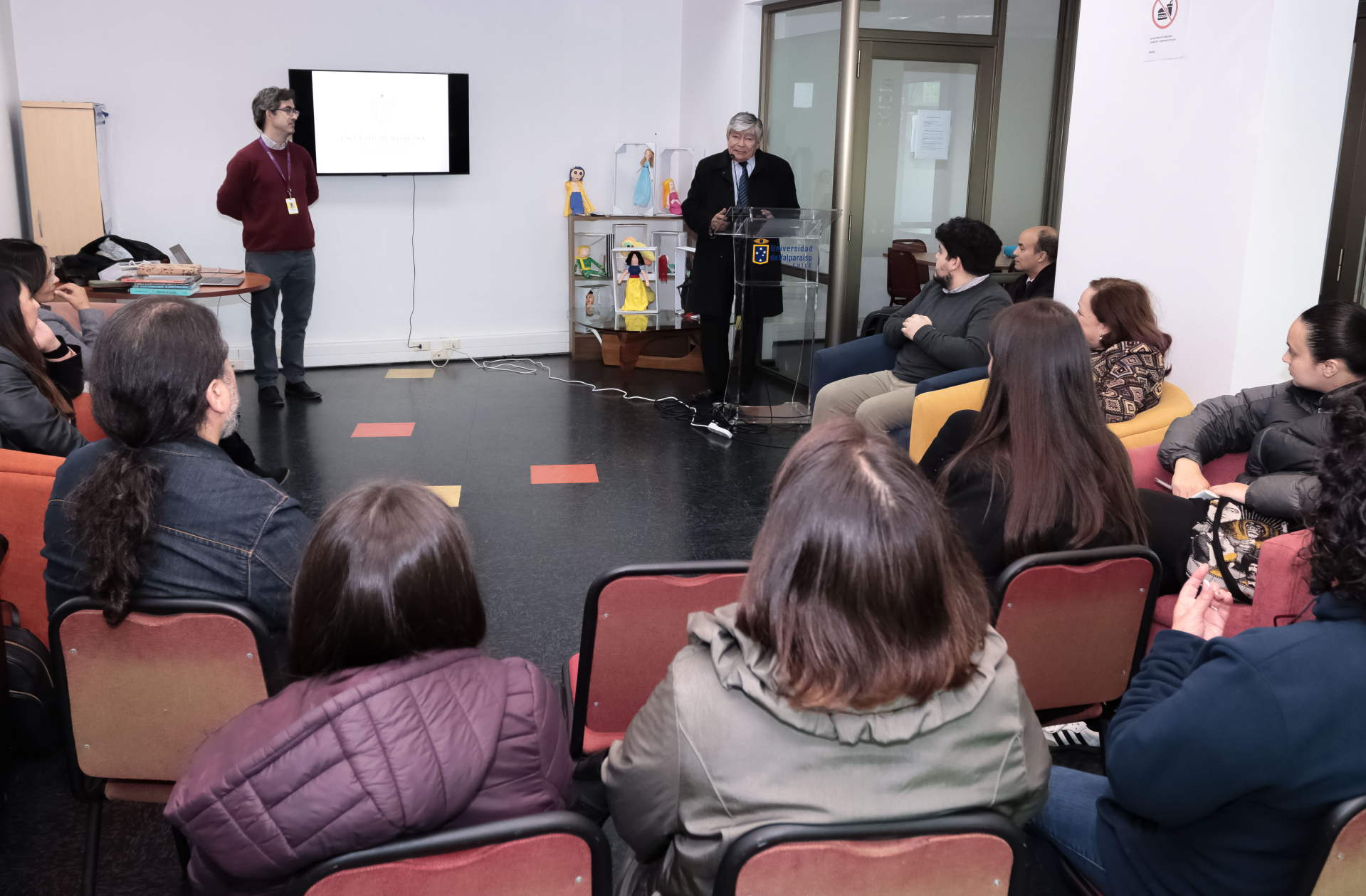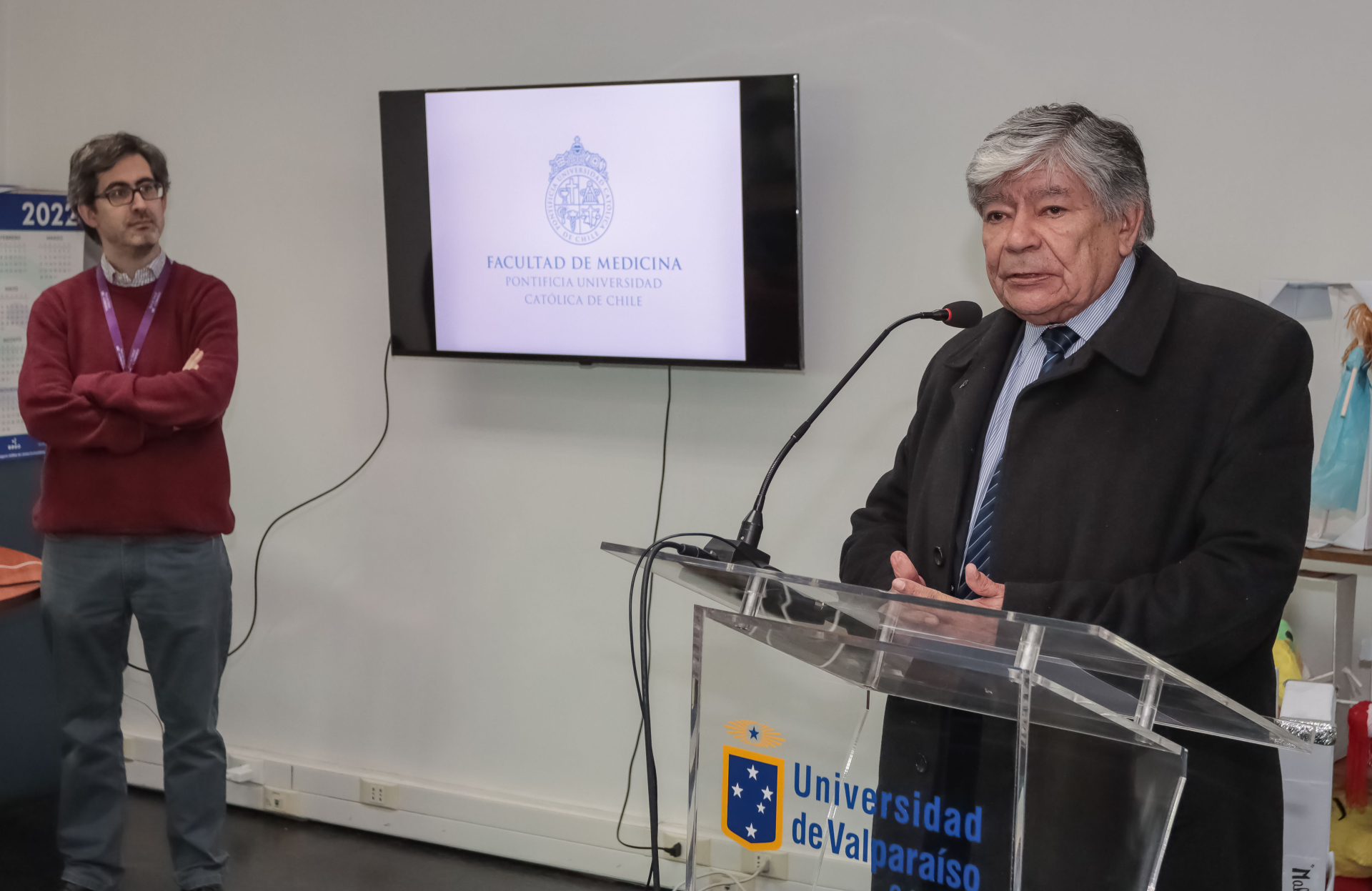 También estuvieron presentes en la ocasión las directoras de las Escuelas de Enfermería y de Fonoaudiología, Paulina Gundelach y Daphne Marfull, respectivamente; la jefa de la carrera de Obstetricia y Puericultura, Alejandra Muñoz; la directora del Laboratorio de Neuroendocrinología de la Escuela de Tecnología Médica, Daniela López; el médico y docente del Laboratorio de Medicina Narrativa de la Escuela de Medicina, Juan Pablo Gigoux, y el encargado de la biblioteca de la sede Reñaca, Jorge Meneses, además de docentes y estudiantes de otras unidades académicas.
