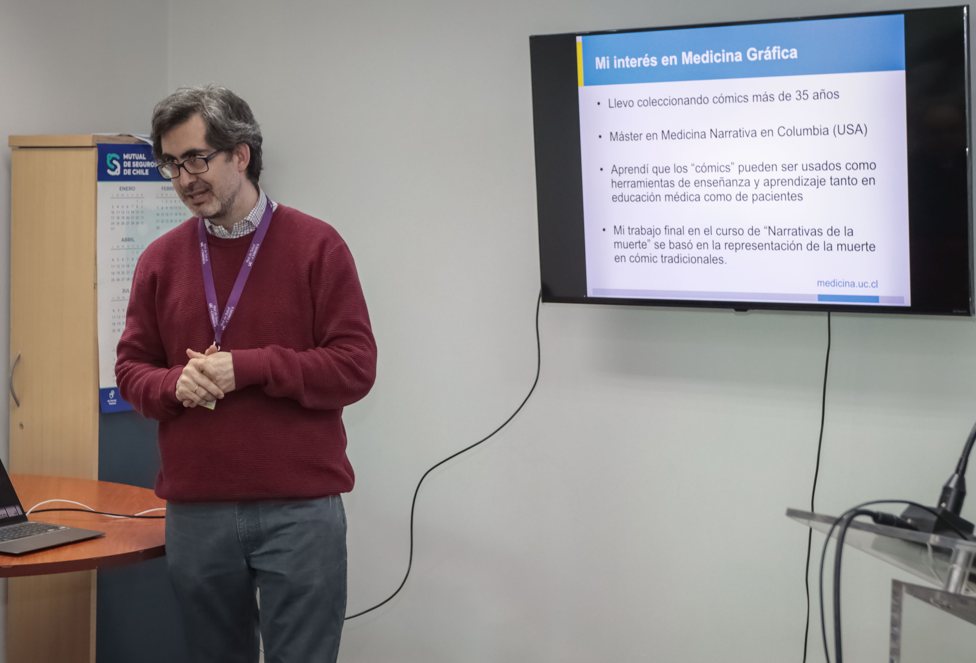 En la actividad intervino como expositor el médico Juan Carlos Claro, docente de Medicina Interna en la PUC y magíster en Medicina Narrativa por la Universidad de Columbia (Estados Unidos), quien en los últimos años se ha dedicado a introducir y diseminar en nuestro país el valor de las historias y las humanidades médicas en la formación de pre y postgrado de esa carrera.