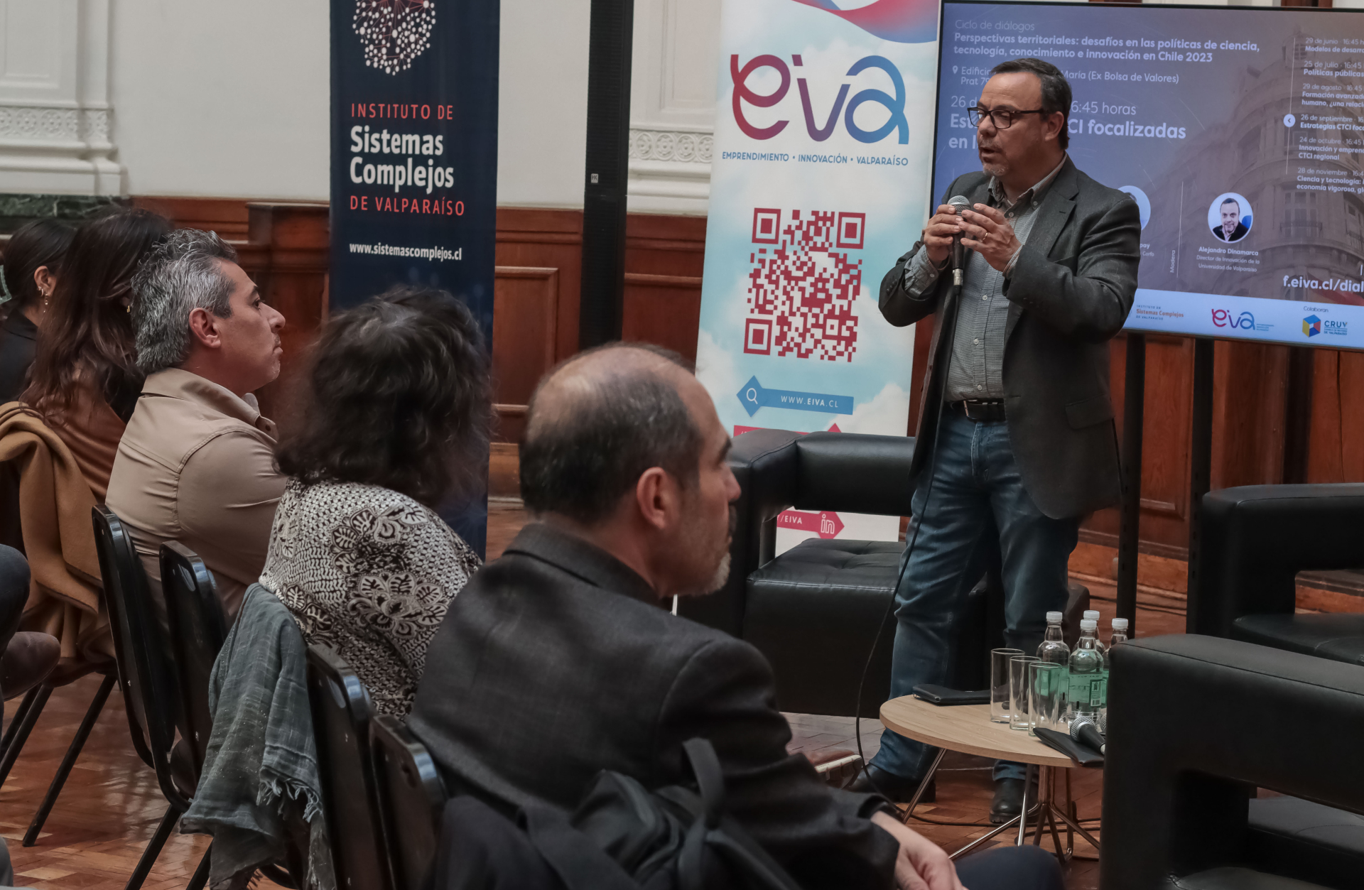 El encuentro, respaldado por el Instituto de Sistemas Complejos de Valparaíso y el Ecosistema de Emprendimiento e Innovación de Valparaíso, EIVA, contó con la participación de la jefa de la División de Fomento e Industria del Gobierno Regional de Valparaíso, Camila Bolados; la directora ejecutiva del Consejo Nacional CTCI para el Desarrollo, Katherine Villarroel, y el director regional de Corfo Valparaíso, Etienne Choupay, y fue moderado por el director de Innovación de la UV, Alejandro Dinamarca, quienes sostuvieron una conversación en torno a los desafíos de la región frente a los procesos de innovación del mercado regional a la par del establecimiento de un crecimiento sostenible y cuidadoso con el medioambiente.