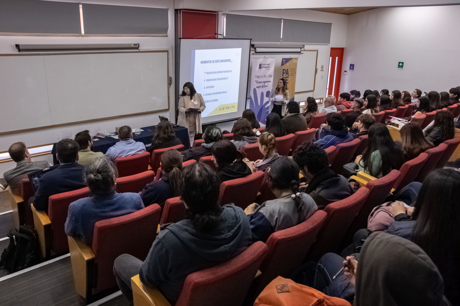 El encuentro pedagógico “Si quieres transformar, elige educar” se inició con la intervención de las coordinadoras del Programa de Acceso a la Educación Superior (PACE) y del Propedéutico Pedagógico UV, Angélica Moreno y Alejandra Campbell, respectivamente.