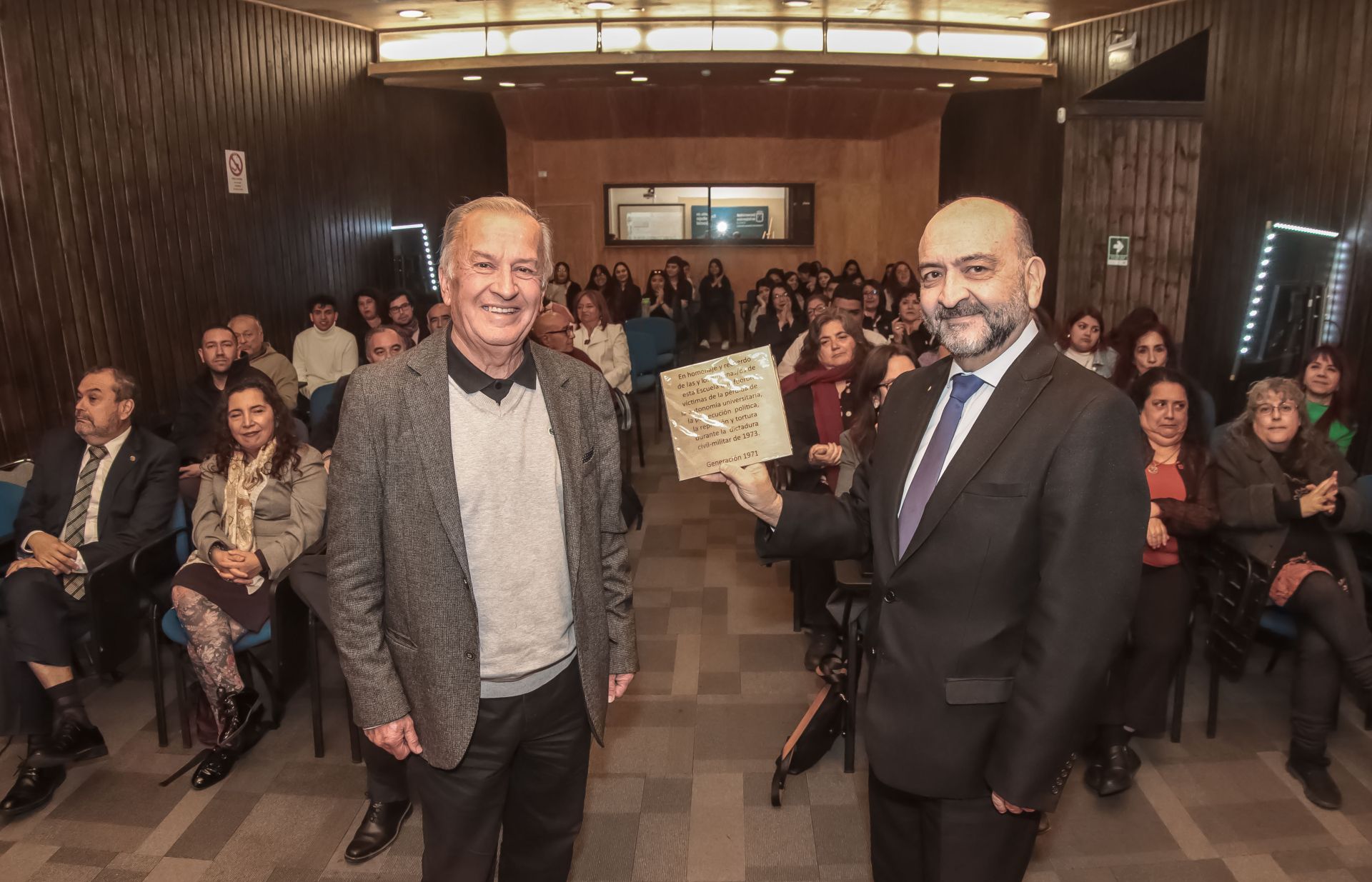 Carlos Guzmán, representante de la generación del 71, compartió su experiencia al decir: "Más que representar a Carlos Guzmán, intento representar a toda una generación que hemos llamado la generación del 71. Durante todos estos años, hemos sido amigos y compañeros desde que ingresamos a la universidad. A pesar de los acontecimientos en la vida, ya sea durante la dictadura, en el período democrático o hasta el día de hoy, siempre hemos mantenido una relación permanente. La carrera de Trabajo Social nos permitió formar parte de esta ceremonia, como generación y para dar a conocer a los estudiantes actuales que vivimos en una universidad comprometida, en un período en el que todos estábamos comprometidos con los cambios. También experimentamos una universidad intervenida, militarizada y vigilada, pero logramos superar esos desafíos. Entregamos una placa conmemorativa en nombre de aquellos que sufrieron tortura y prisión, así como a todos los compañeros y compañeras que ya no están con nosotros o que están fuera del país. Me voy muy feliz y contento. A mis 73 años y después de 46 años de ejercicio profesional, esto es como la guinda de la torta. Poder transmitir de alguna manera lo que nosotros vivimos como estudiantes y profesionales a las nuevas generaciones es algo muy gratificante”.