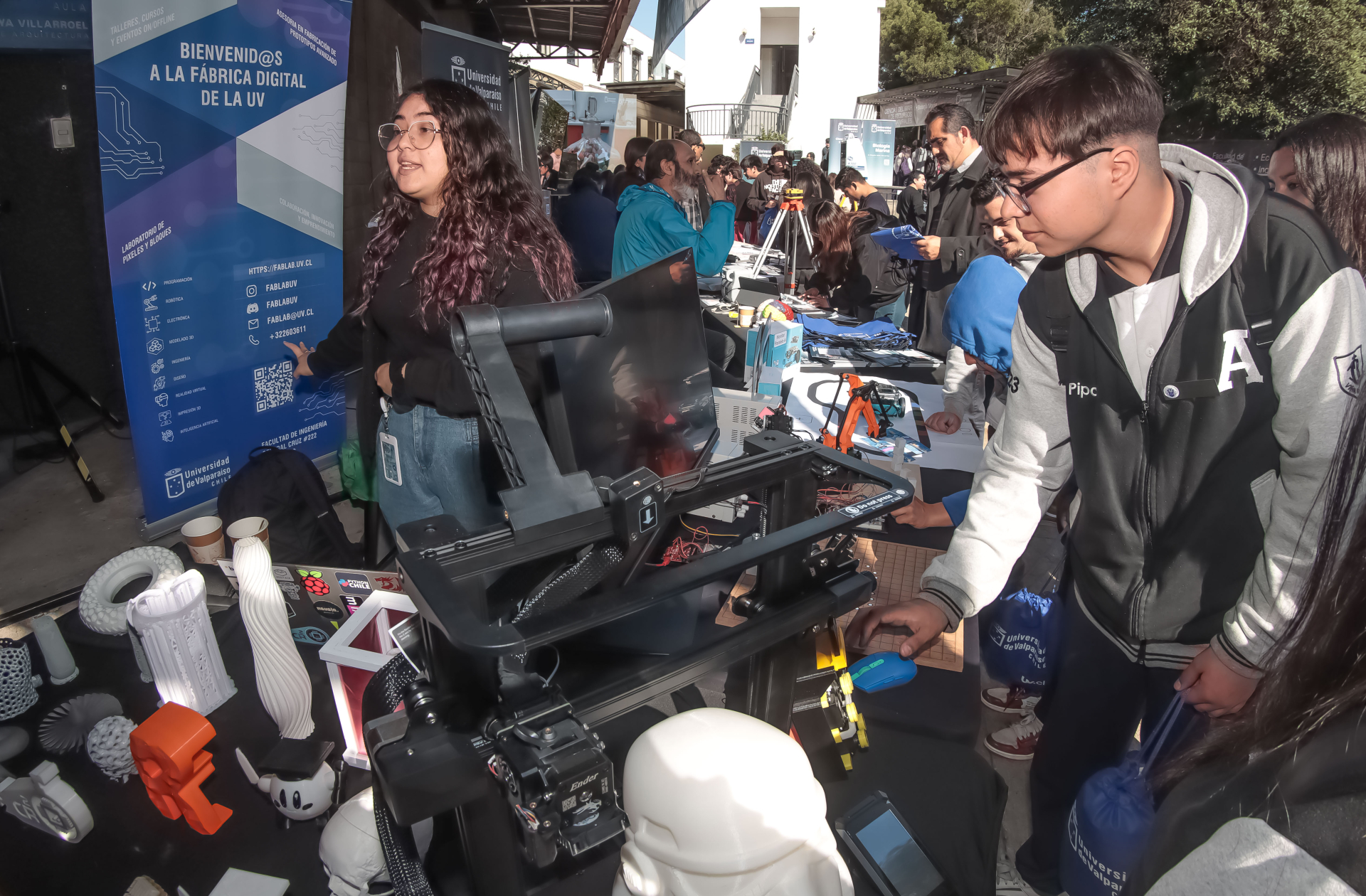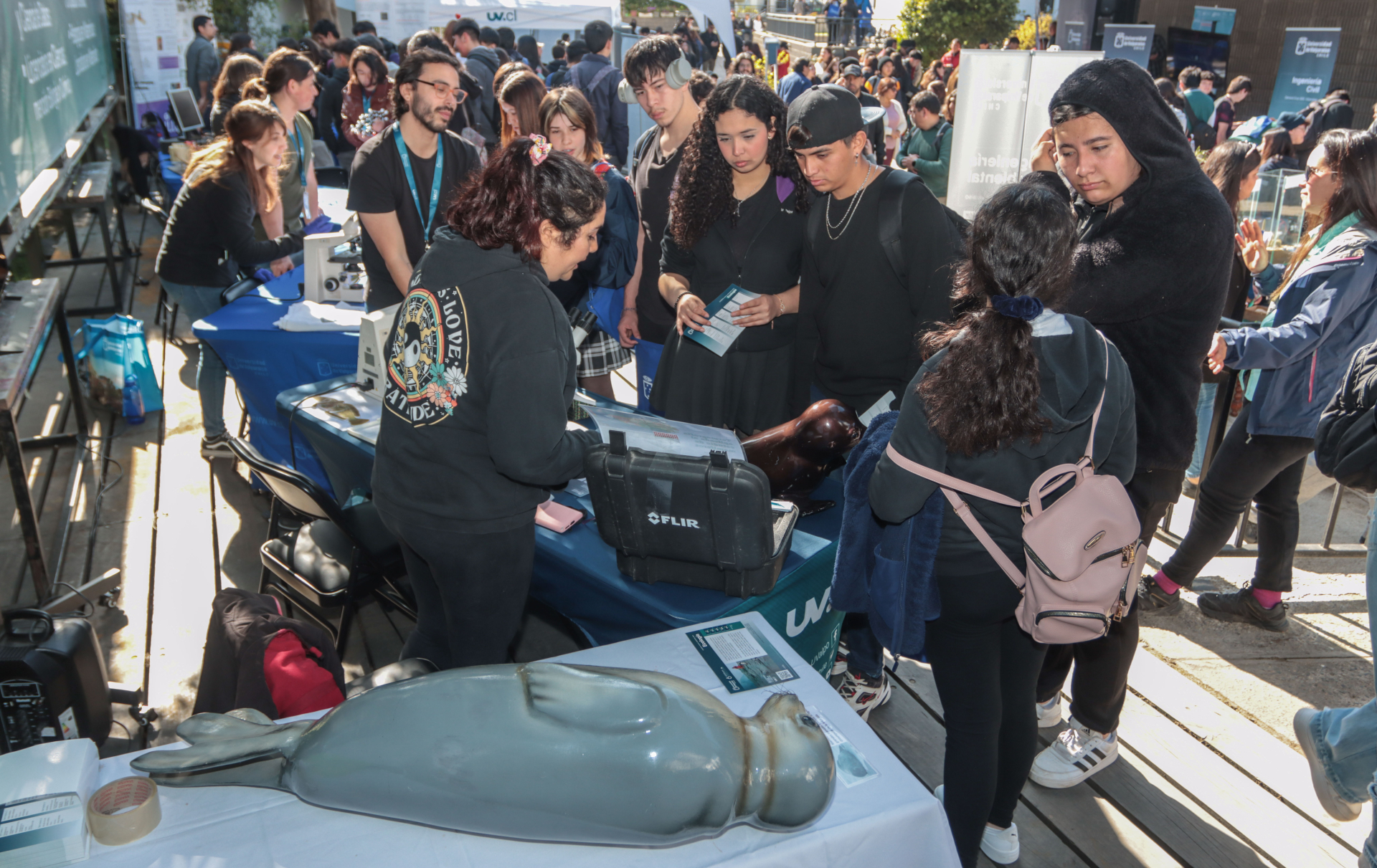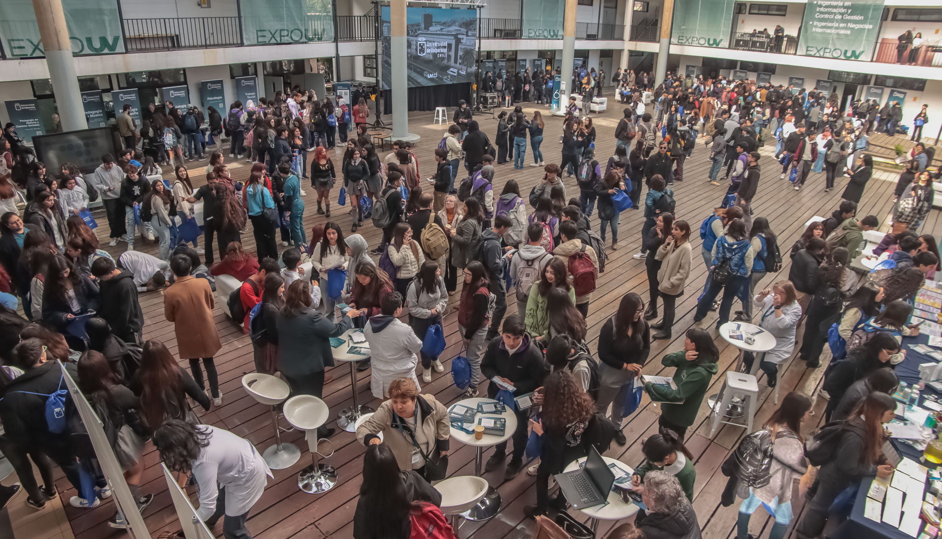 Cerca de dos mil estudiantes de enseñanza media provenientes de distintos puntos de la región, visitaron la Expo UV 2023 en su primer día. Se trata del evento promocional más relevante de la institución y que este año destacó por desarrollar un carácter ferial con la incorporación de áreas temáticas.