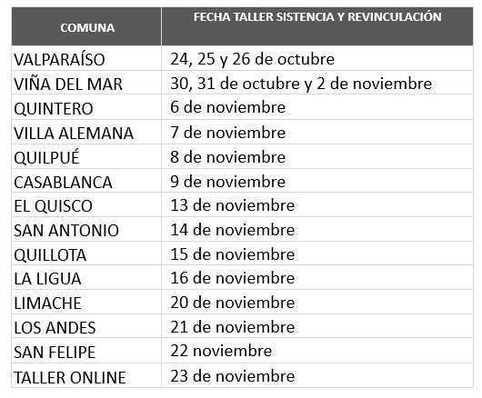 Las fechas y lugares de los talleres se detallan en el cuadro adjunto: