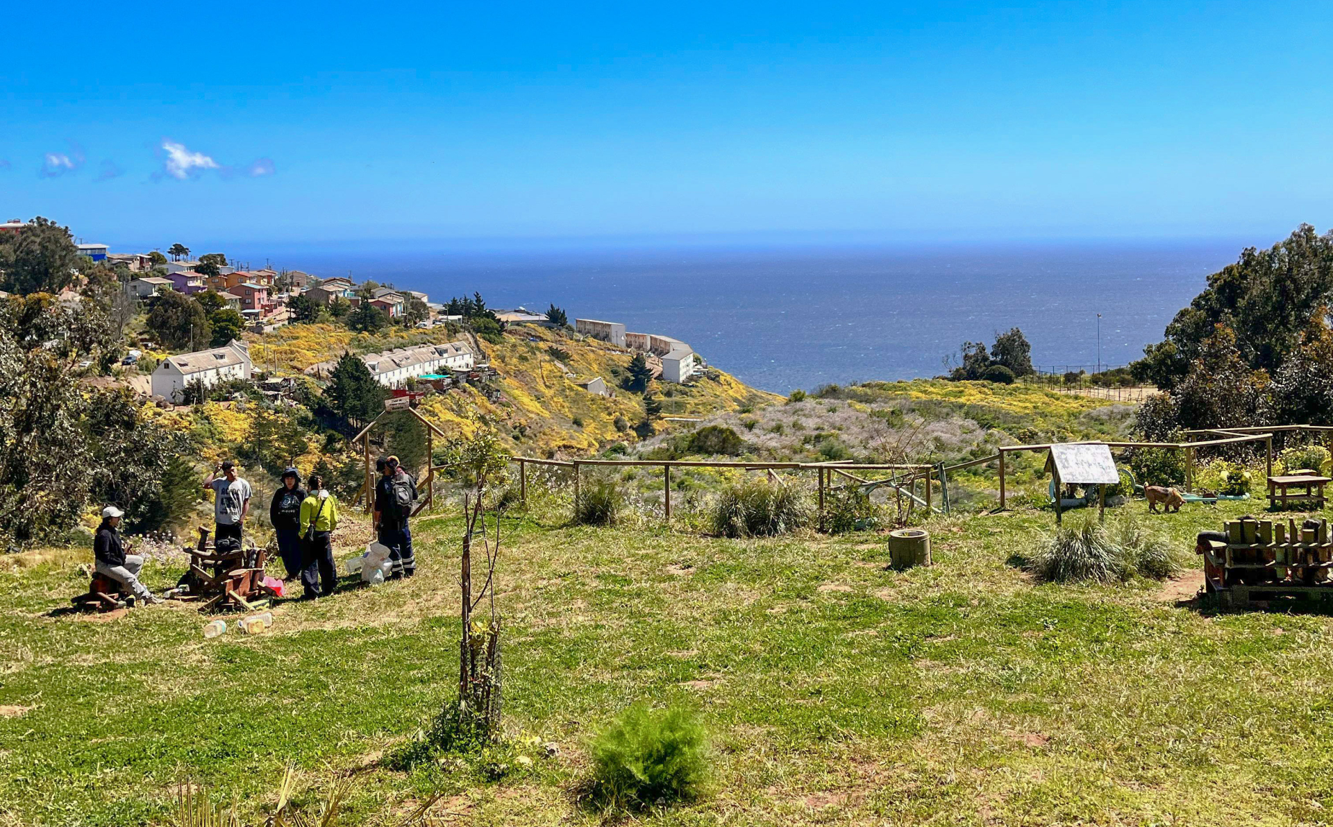 Un grupo de estudiantes de las carreras de Ingeniería Ambiental y Gestión en Turismo y Cultura de la Universidad de Valparaíso, participaron de una jornada de plantación de docas (Carpobrotus chilensis) en el Parque de Conservación Quebrada Los Lúcumos, en el sector de Porvenir, Playa Ancha.