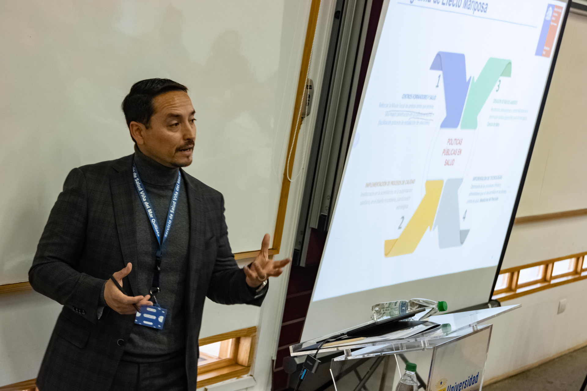 La primera parte de la jornada culminó con una exposición del jefe del Subdepartamento de Formación y Capacitación del Servicio de Salud Viña del Mar-Quillota, Marcelo Díaz, sobre los antecedentes relevancia e innovación en la relación asistencial docente.
