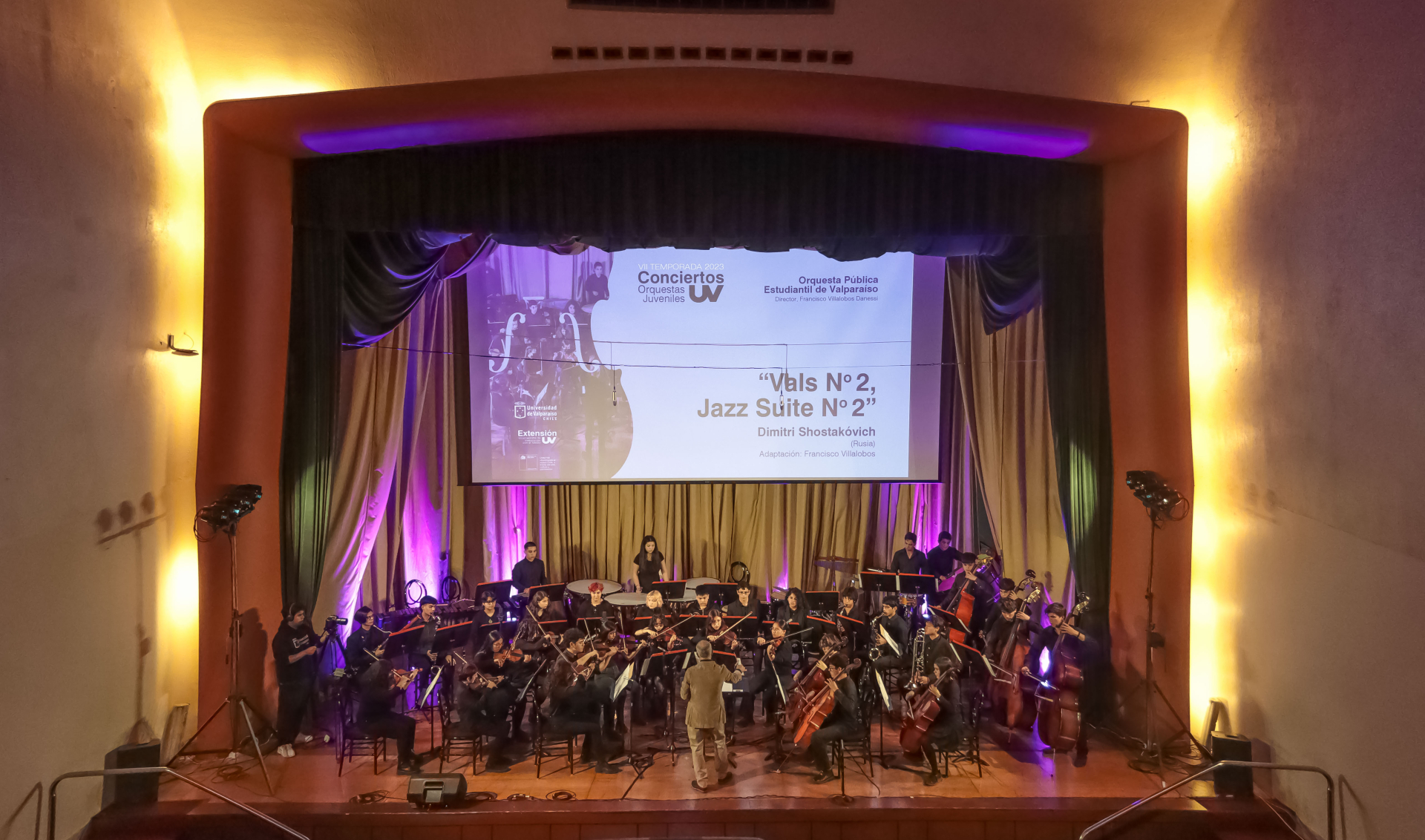 La agrupación estuvo dirigida por su maestro fundador, el profesor Francisco Villalobos, quien en la oportunidad agradeció a la Universidad de Valparaíso por llevar a cabo, por siete años ya, la Temporada de Orquestas Juveniles, que otorga a las y los jóvenes músicos presentarse ante el público, respaldando el desarrollo del arte y la cultura.