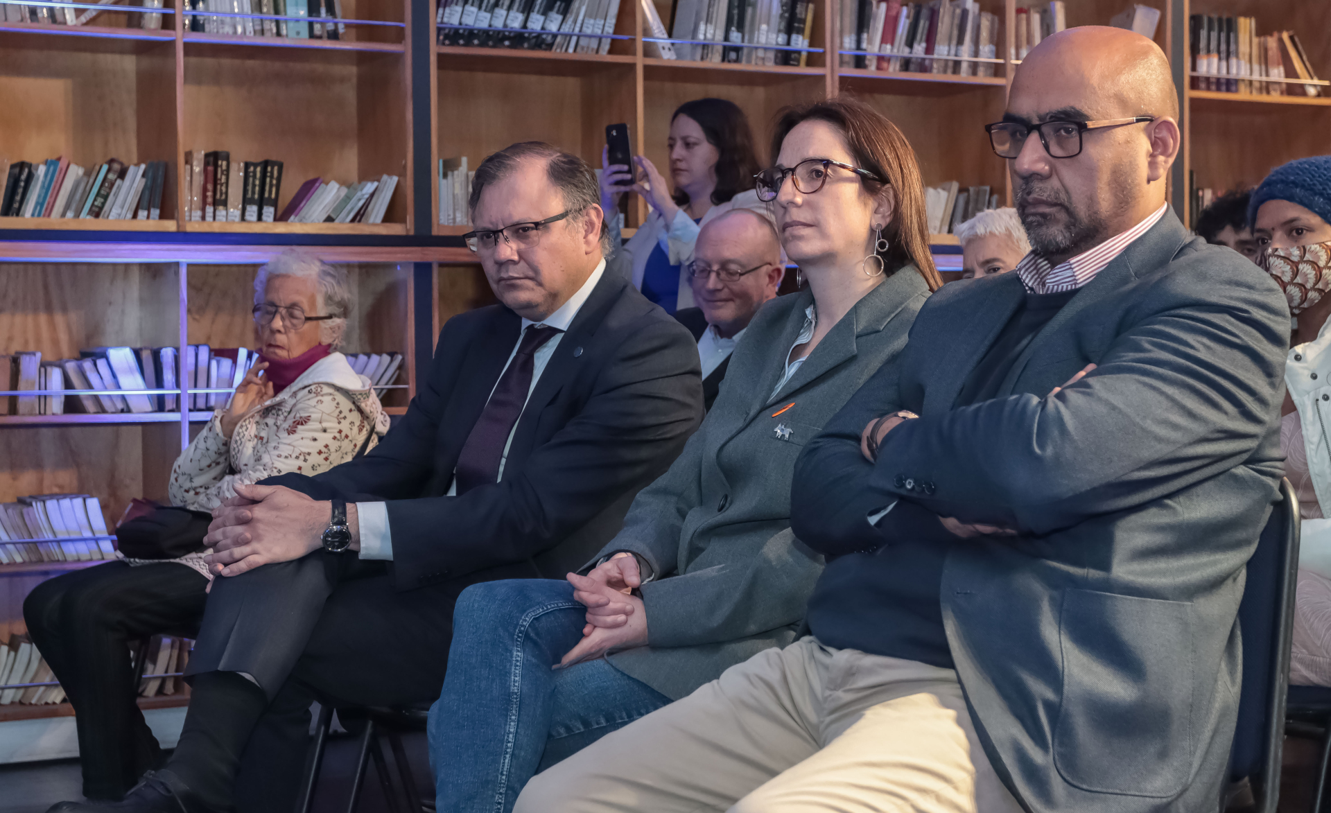 El encuentro tuvo lugar en la Biblioteca de la Facultad de Humanidades y Educación y convocó a más de un centenar de docentes, estudiantes, público general y autoridades institucionales, entre las cuales estuvieron presentes el rector Osvaldo Corrales; la secretaria general de la UV, Nicole Selamé; el vicerrector académico, Carlos Becerra, y el decano y la vicedecana del plantel anfitrión, Pablo Aravena y Ángela Vallejos, respectivamente.