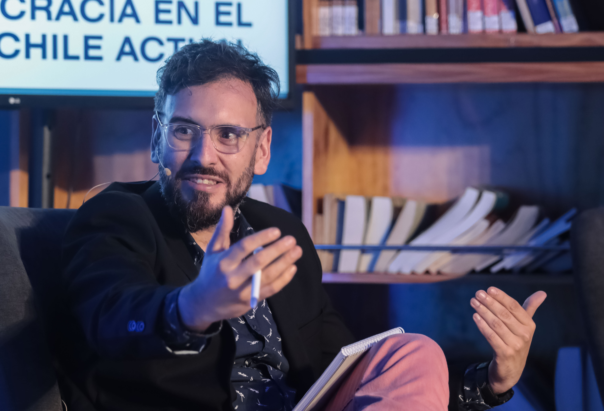 El primero de los panelistas en hacer uso de la palabra fue Max Colodro, quien de entrada argumentó que la democracia en Chile, en el contexto global de debilitamiento que exhibe este sistema político en la actualidad, presenta una compleja singularidad: la enorme controversia que genera su Constitución.