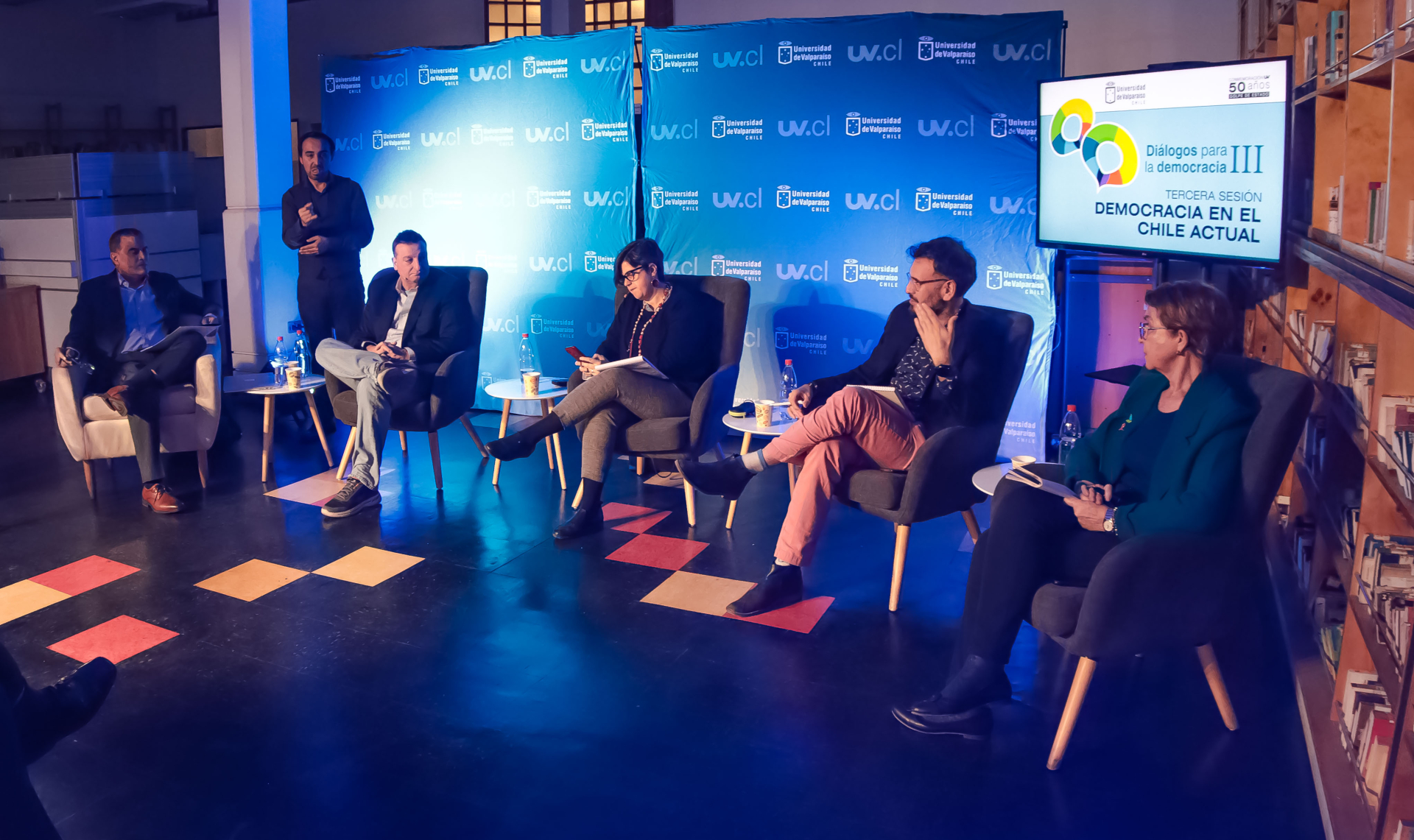 “Democracia en el Chile actual” fue el tema sobre el cual giraron los análisis y planteamientos de los expositores que intervinieron en la tercera sesión de la temporada 2023 de Diálogos para la Democracia, ciclo de seminarios al que convoca la Universidad de Valparaíso para promover la reflexión sobre diversas materias de interés nacional, desde una perspectiva amplia, franca, respetuosa y pluralista.