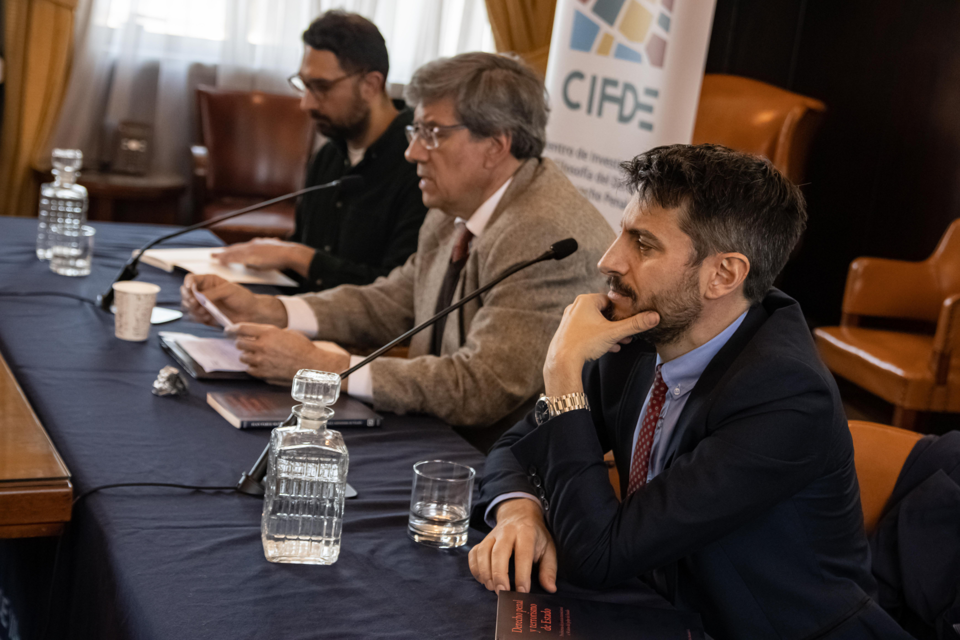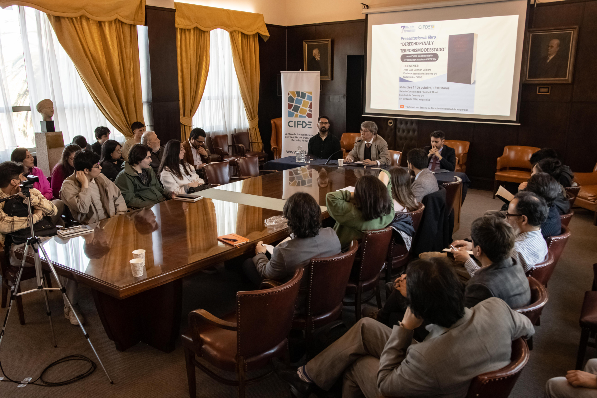 La obra fue presentada por el presidente del Departamento de Ciencias Penales de la Escuela de Derecho de la UV y subdirector del CIFDE, José Luis Guzmán, y participó además el editor del sello editorial Roneo, así como el autor del libro.