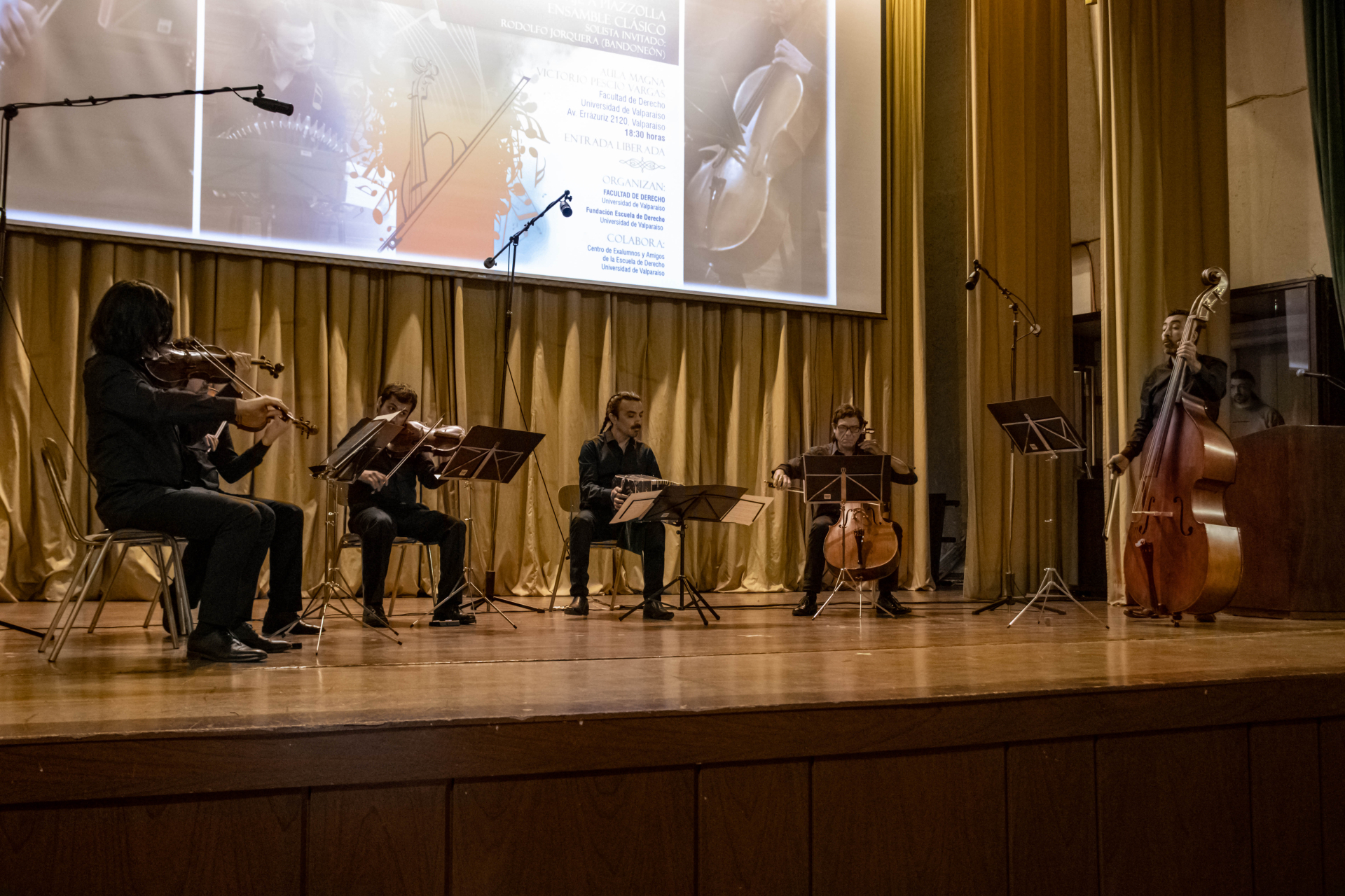 Con el programa musical “Homenaje a Ástor Piazzolla”, interpretado por el Ensamble Clásico junto al bandoneonista Rodolfo Jorquera, se llevó a cabo con éxito el evento inaugural de la Temporada de Conciertos de Primavera 2023 organizada por la Facultad de Derecho y la Fundación Escuela de Derecho de la Universidad de Valparaíso, con apoyo del Centro de Exalumnos y Amigos de la Escuela de Derecho.