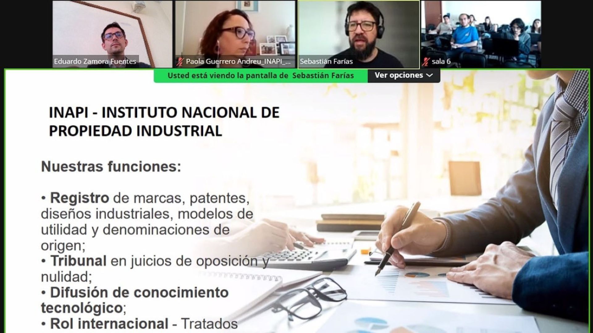 Una charla sobre los principios que rigen la propiedad intelectual y la propiedad industrial dictó a estudiantes de la Escuela de Derecho de la Universidad de Valparaíso el abogado Sebastián Farías, profesional de la Subdirección de Transferencia de Conocimientos del Instituto Nacional de Propiedad Industrial (INAPI).