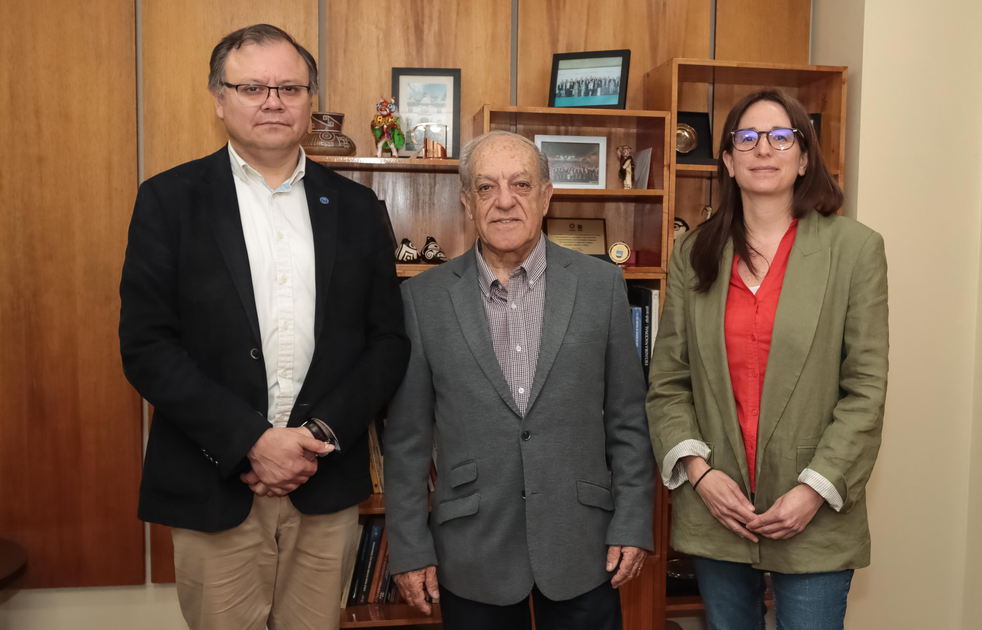 En la imagen superior, desde la izquierda, el rector de la UV, Osvaldo Corrales; el profesor Manuel Roncagliolo, y la secretaria general, Nicole Selamé.