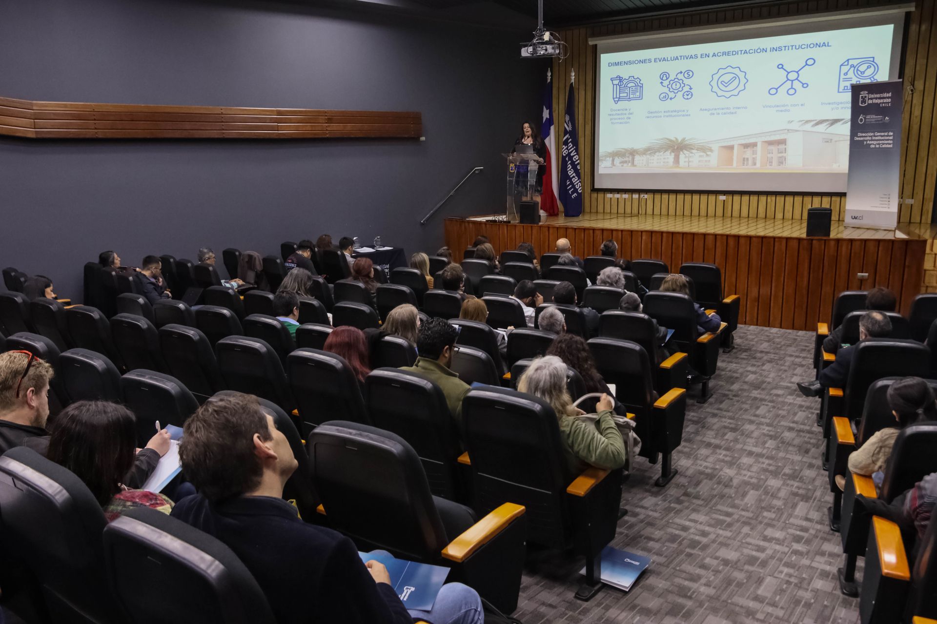 Estos cambios fueron presentados y analizados por la directora general de Desarrollo Institucional y Aseguramiento de la Calidad de la UV, Soledad Narea, quien en primer término se refirió a los antecedentes de contexto, para luego abordar algunos aspectos esenciales del nuevo modelo de evaluación de la CNA, sus implicancias para las carreras de pregrado y los programas de postgrado y los desafíos que todo eso conlleva para la Universidad de Valparaíso en su conjunto.