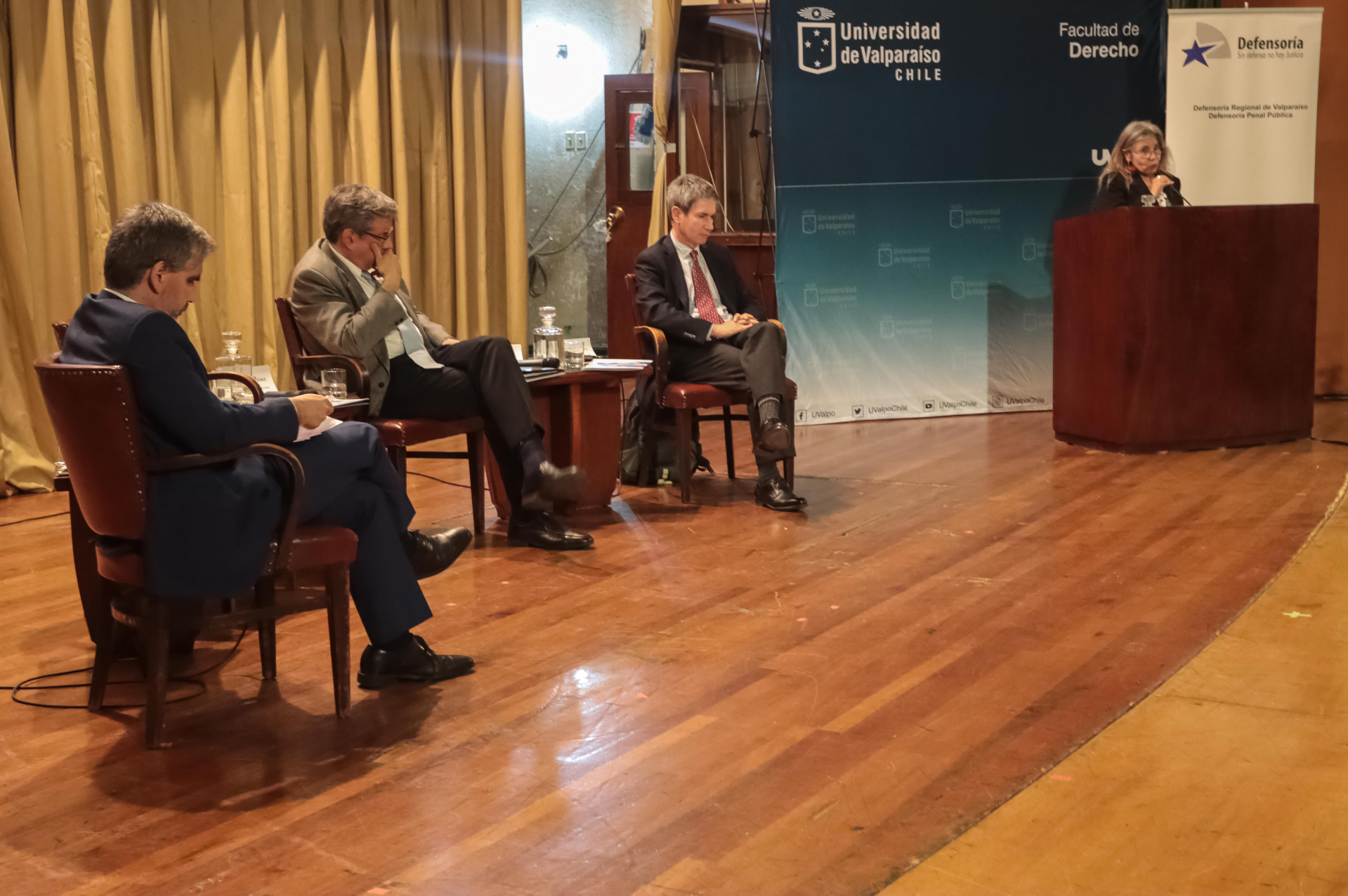 El seminario contó con las palabras de bienvenida de Ricardo Saavedra, decano de la Facultad de Derecho de la Universidad de Valparaíso, y Claudio Pérez, defensor regional. Asistieron además Claudia Perivancich, fiscal regional; Paula Gutiérrez, secretaria regional ministerial de Justicia y Derechos Humanos; Edgar Jofré, jefe de la Quinta Zona de Carabineros Valparaíso; Andrés Montenegro, en representación de Sandra Gutiérrez, jefa regional de PDI Valparaíso; Jaqueline Ibarra, directora regional subrogante del Servicio de Registro Civil e Identificación, ministros de la Corte de Apelaciones, jueces de garantía, defensores públicos, funcionarios de Carabineros, profesores y profesoras, estudiantes y público general.