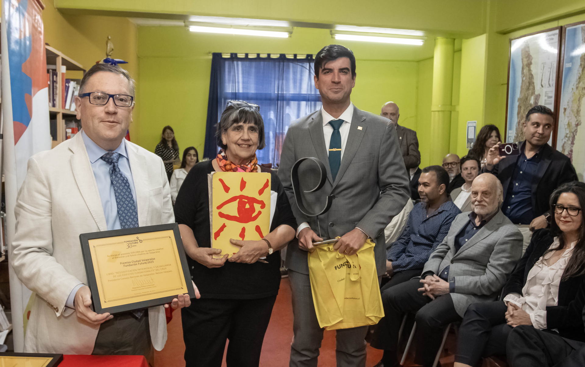 La ceremonia de entrega de los Premios Ciudad 2023 tuvo lugar en la biblioteca del Liceo Bicentenario Técnico de Valparaíso y fue encabezada por la presidenta de Fundación Futuro, Magdalena Piñera, quien en la ocasión estuvo acompañada por el presidente del jurado encargado de seleccionar a los ganadores, el gestor cultural Rafael Torres.