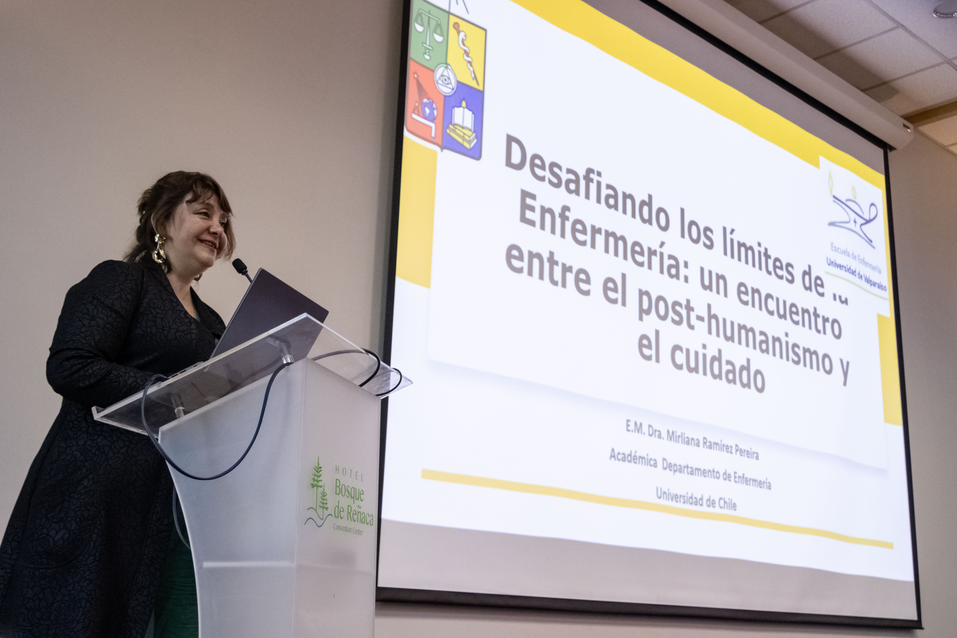 Su inauguración estuvo a cargo de la directora del Departamento de Enfermería de la Universidad de Chile y presidenta del Comité Científico de la Sociedad Chilena de Enfermería en Diálisis y Trasplante, Mirliana Ramírez, quien dictó la conferencia titulada “Desafiando los límites de la Enfermería: un encuentro entre el posthumanismo y el cuidado”.