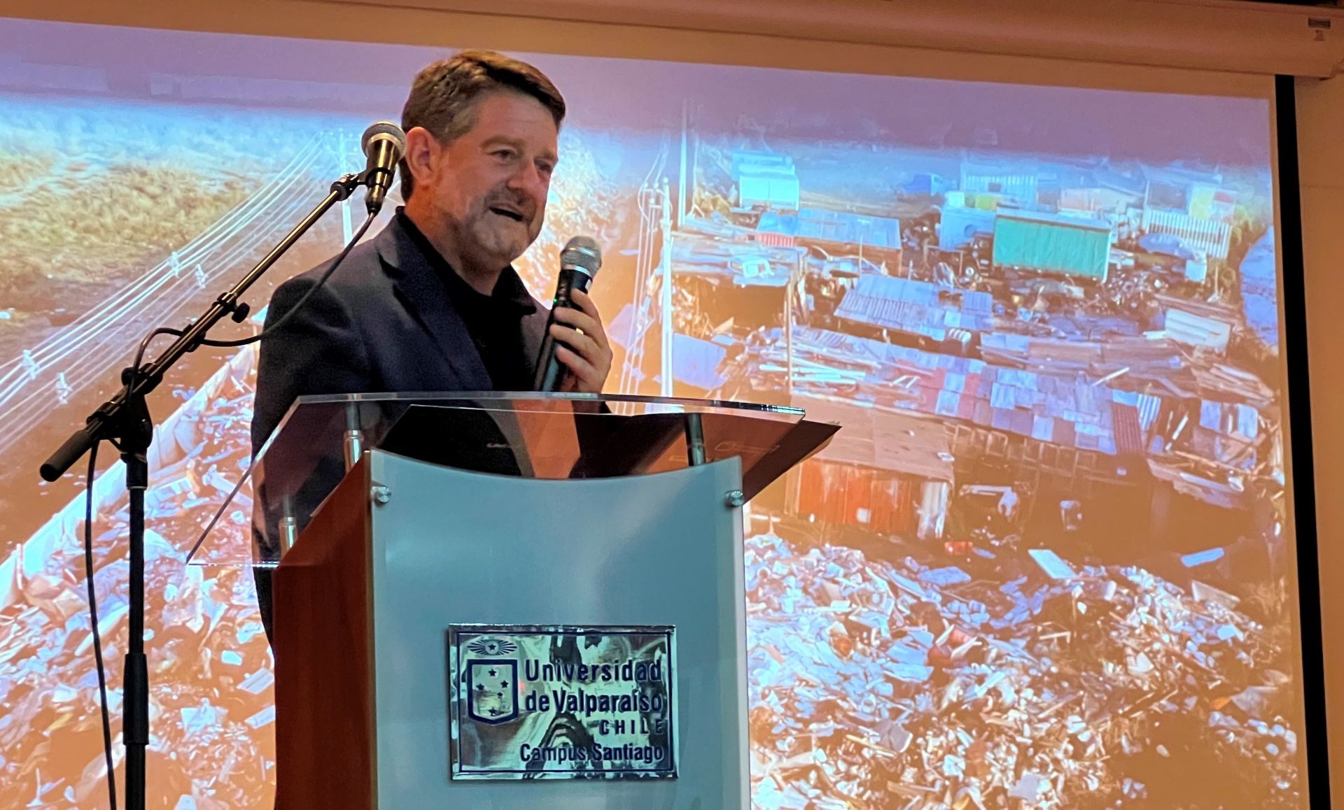 Con una amplia concurrencia de estudiantes, académicos, académicas, representantes municipales, sociales y de gremios, se desarrolló la conferencia del gobernador de Santiago, Claudio Orrego, “Recuperando la ciudad para las personas”, en el teatro del Campus Santiago de la Universidad de Valparaíso.