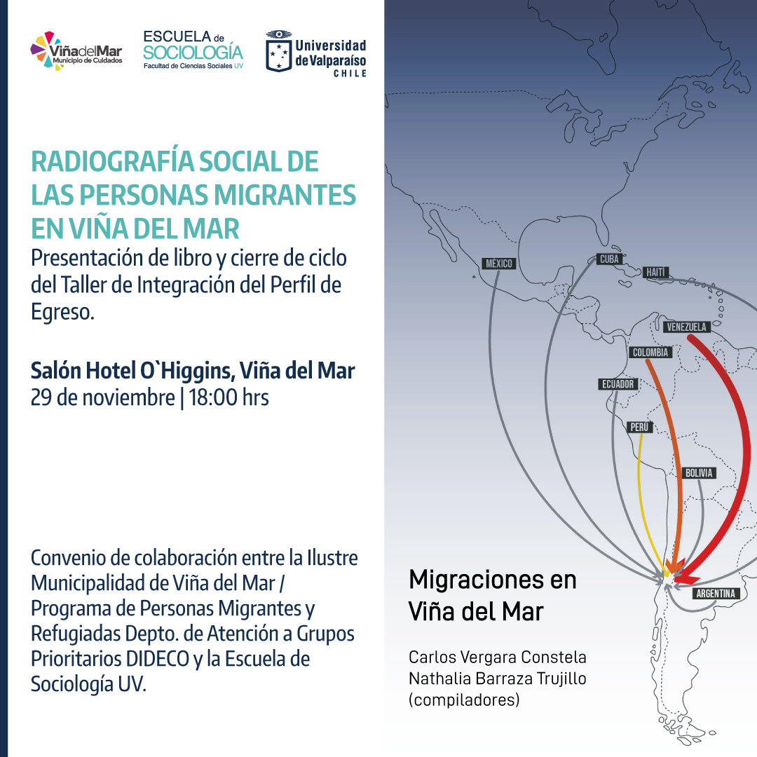 El acto se realizará a las 18:00 horas, en el Salón Independencia, y corresponde al Convenio de Colaboración entre la Escuela de Sociología UV y el Municipio de Cuidados de Viña del Mar, asociado a la Dirección de Desarrollo Comunitario y el Departamento de Atención a Grupos Prioritarios, con su Programa de Personas Migrantes y Refugiadas.