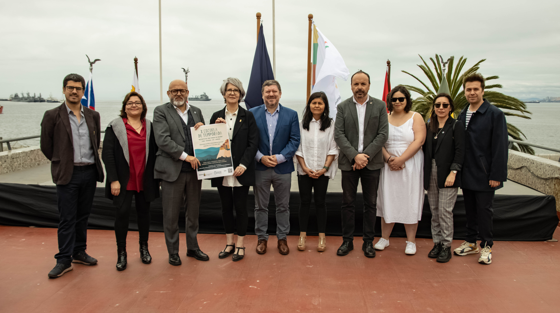 Destacando el rol público de las universidades del Estado, la vicerrectora de Extensión y Comunicaciones de la Universidad de Chile, Pilar Barba, junto a su homólogo de Vinculación con el Medio de la Universidad de Valparaíso, Carlos Lara, anunciaron la Escuela de Temporada, evento cultural que en su décima versión se desarrollará en la ciudad puerto y que busca congregar a las y los ciudadanos de Valparaíso a las diversas charlas, paneles y presentaciones artísticas abiertas y gratuitas al público.